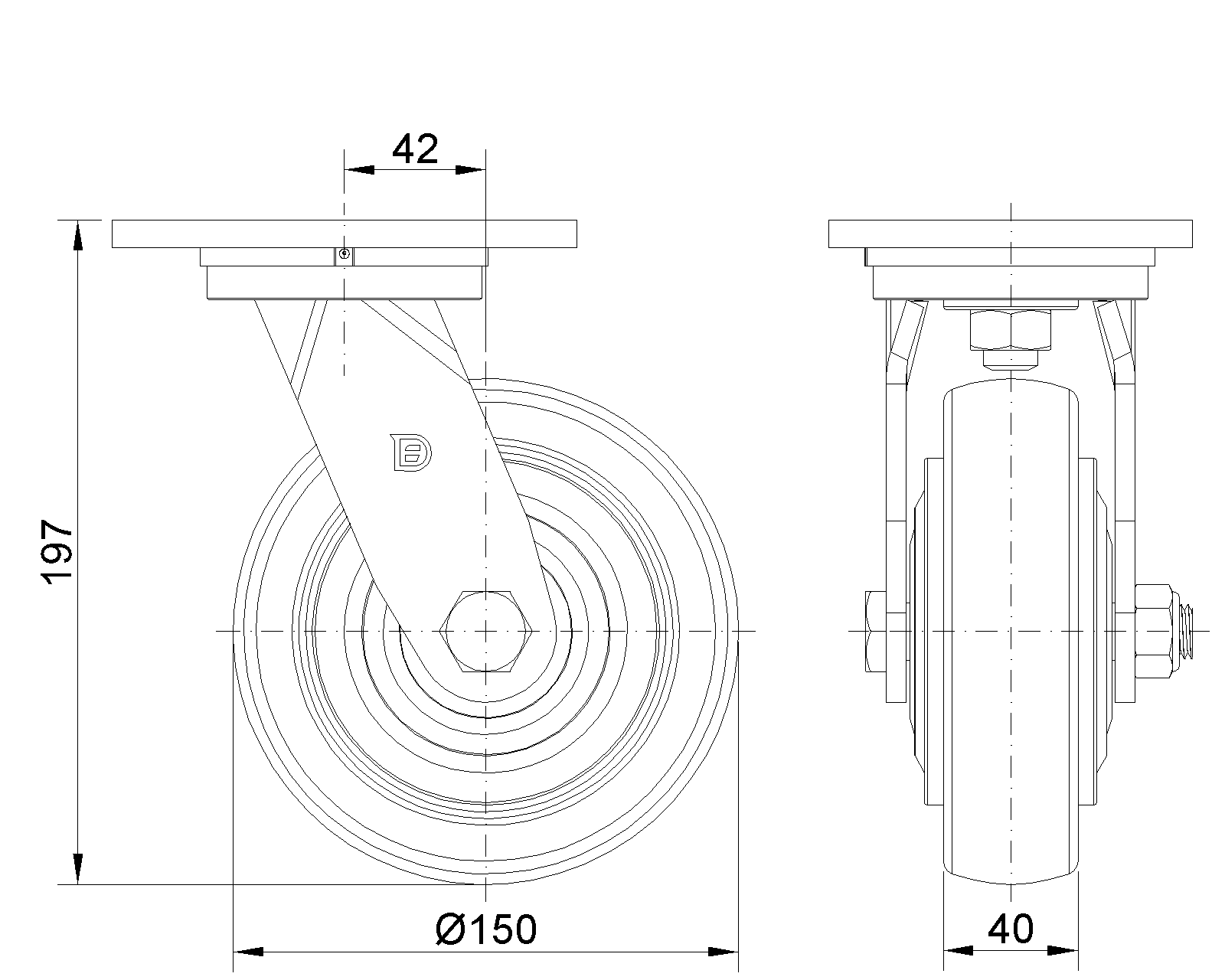 Thiết bị lắp đặt tấm đế, khoảng cách lỗ 110 x 75 Lõi bánh xe bằng nhựa nhiệt dẻo, màu bề mặt bánh xe tự nhiên Vòng bi bánh xe—vòng bi cầu chính xác, được trang bị nắp chống xoắn đặc biệt |