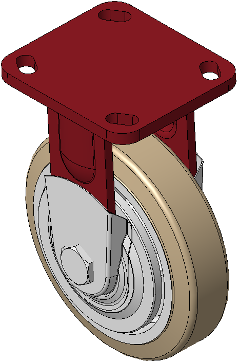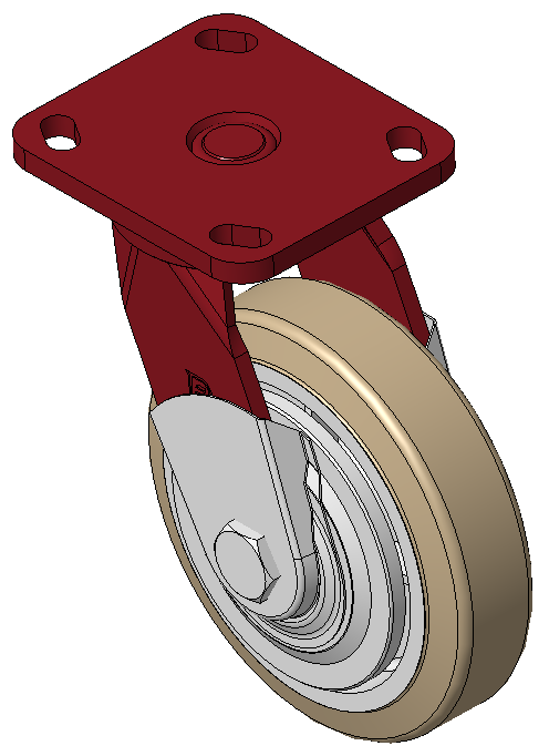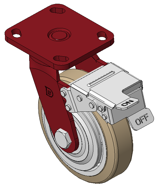 | Bánh xe xoay với khung thép hàn, sơn phủ màu đỏ.