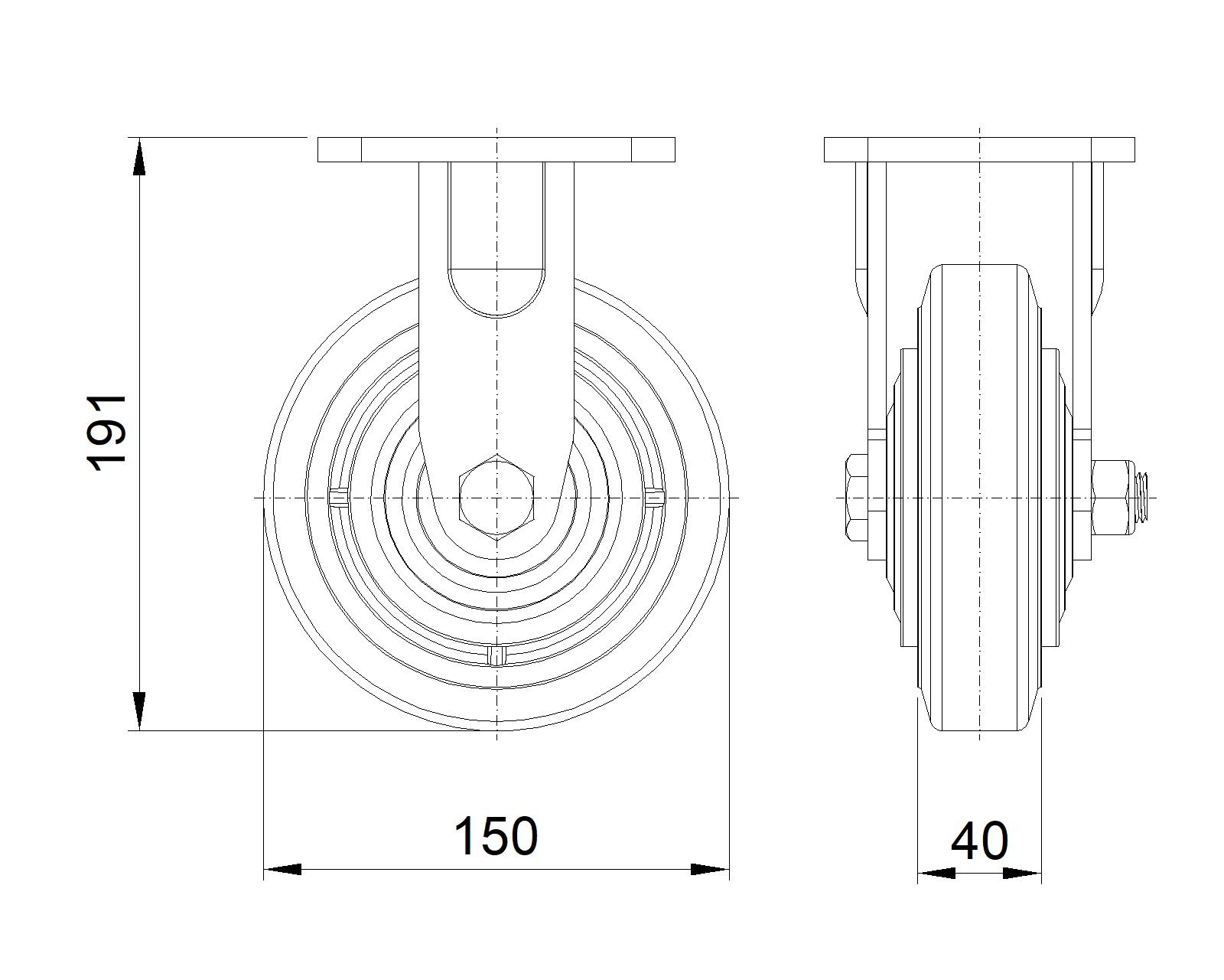 | Kéo NBR Wheel (Mill Raw) Đường kính bánh xe × Chiều rộng bánh xe 150 x 40mm |