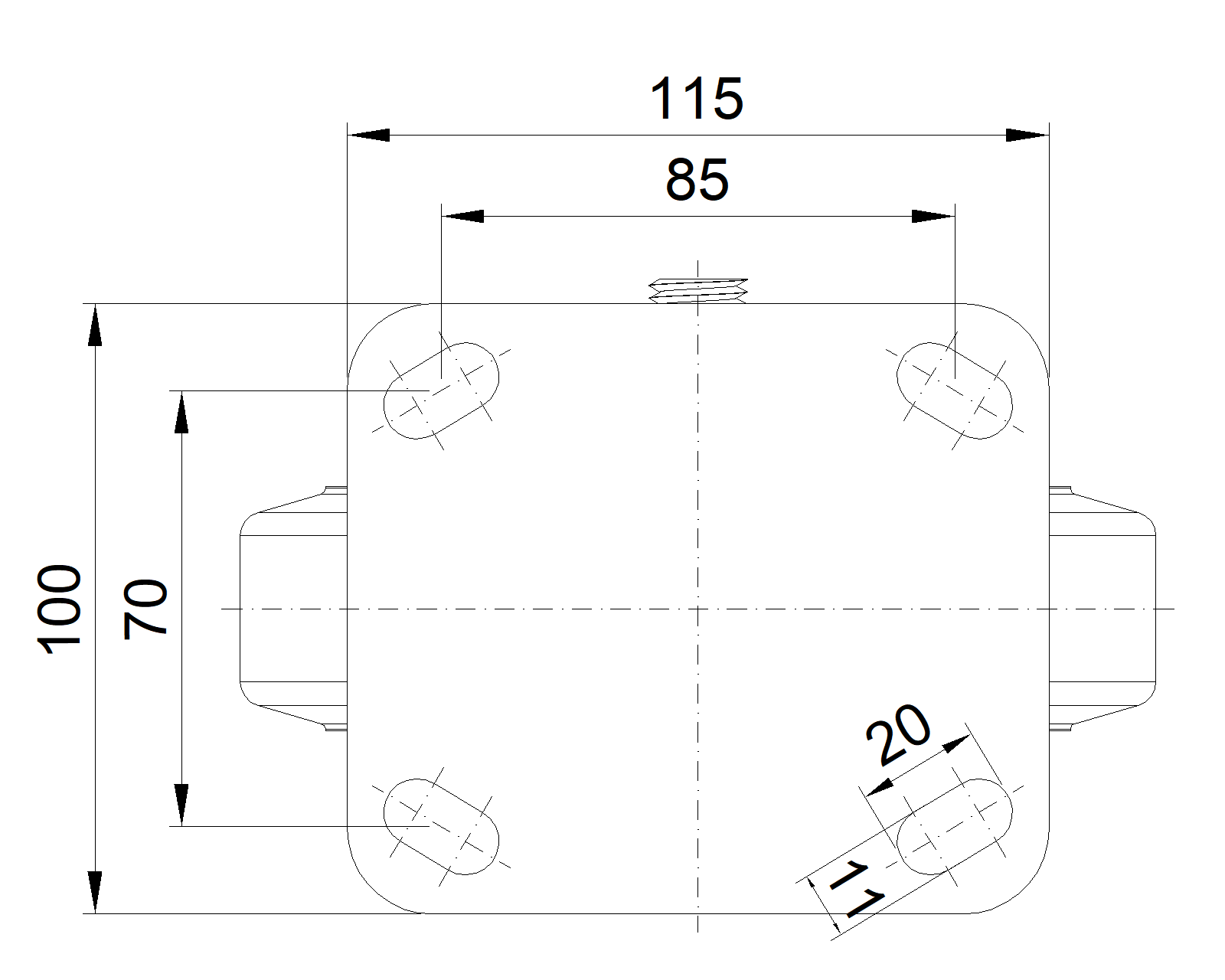 | Bánh xe cố định, khung thép hàn - khoảng cách lỗ 85x70