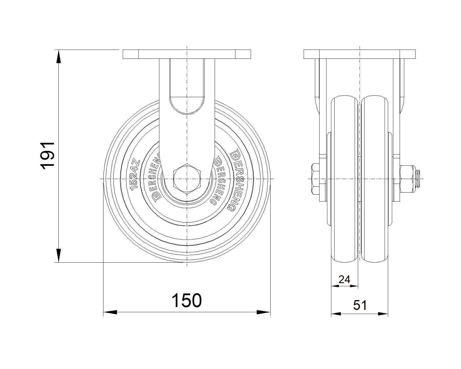 | Bánh xe ZQPU (hồ quang nâu) Đường kính bánh xe × Chiều rộng bánh xe 150 x 24 (51) mm |