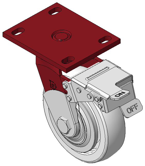 | Bánh xe xoay với khung thép hàn, sơn đỏ