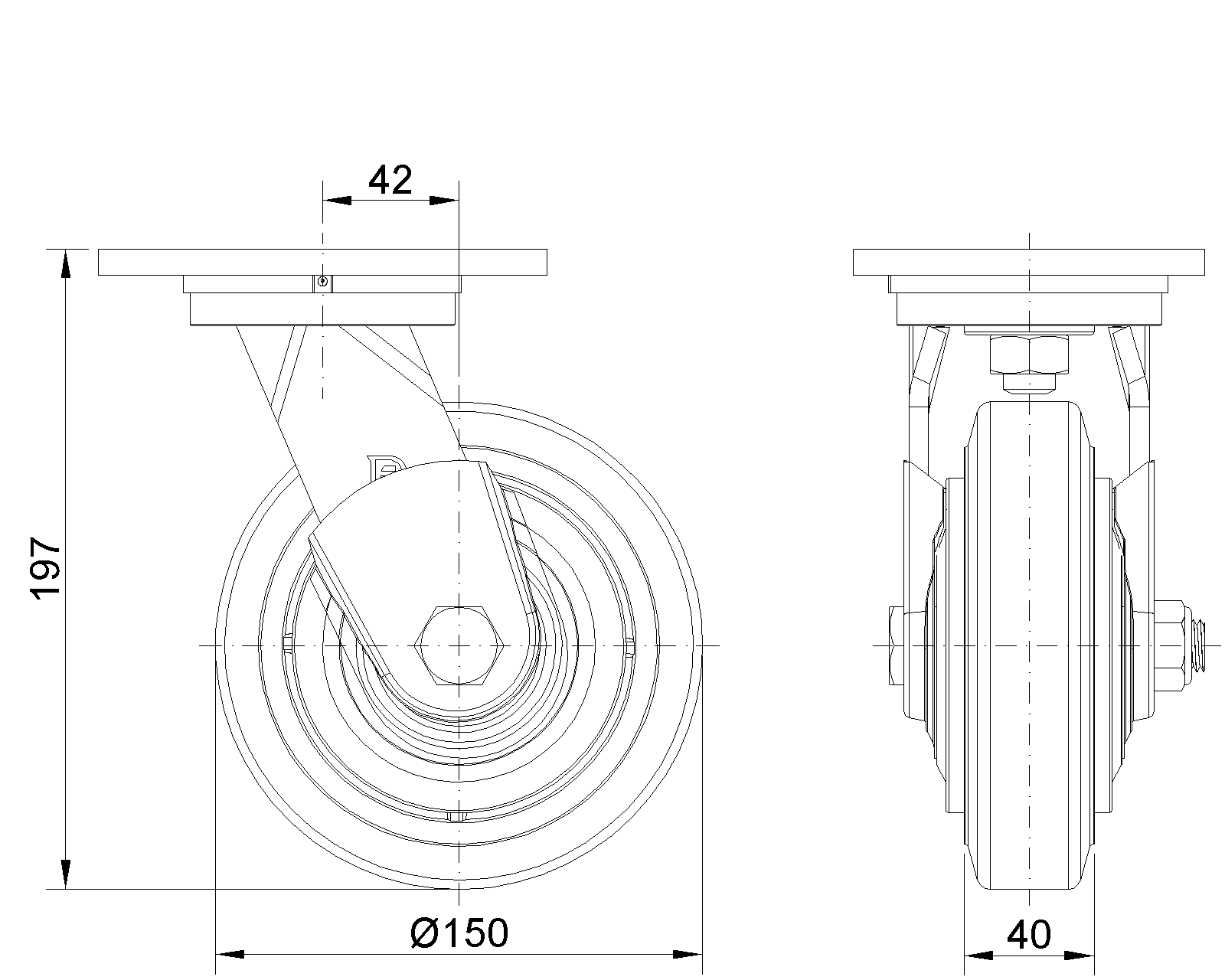| Kéo NBR Wheel (Mill Raw) Đường kính bánh xe × Chiều rộng bánh xe 150 x 40mm |