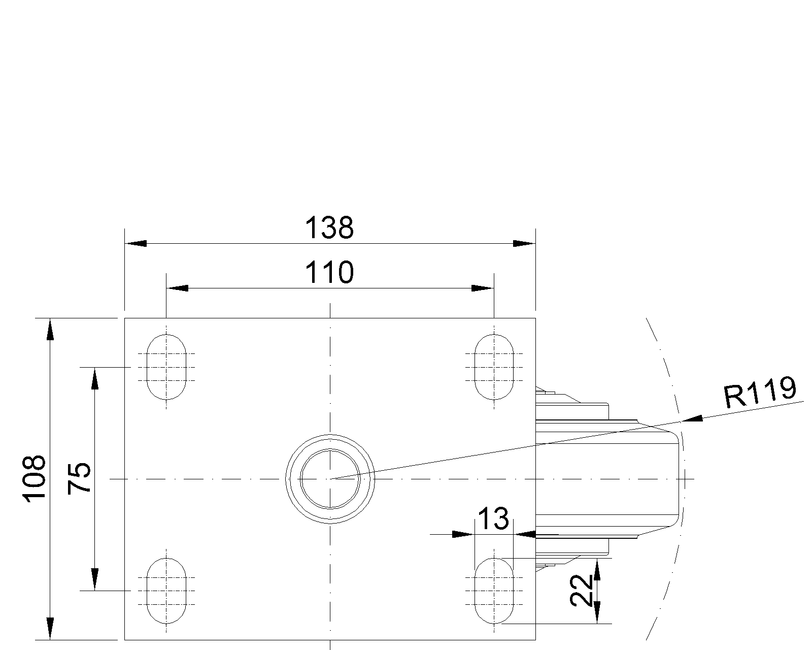 Thiết bị lắp đặt tấm đế, khoảng cách lỗ 110x75mm. Lõi bánh xe bằng gang, bề mặt bánh xe bằng cao su chất lượng cao, độ đàn hồi cao, được phay lại màu gốc. Vòng bi bánh xe—vòng bi cầu chính xác, được trang bị nắp chống xoắn đặc biệt. |