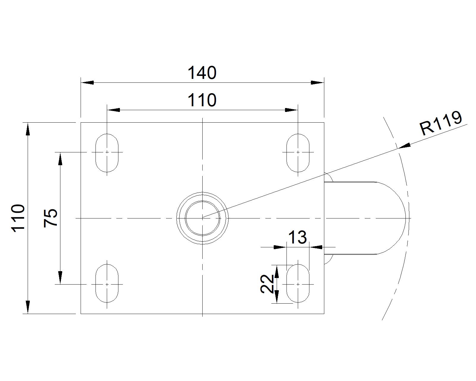 Lắp đế, khoảng cách lỗ 110 x 75 Lõi bánh xe bằng gang, gai polyurethane chất lượng cao, màu nâu phay Vòng bi bánh xe - vòng bi chính xác |