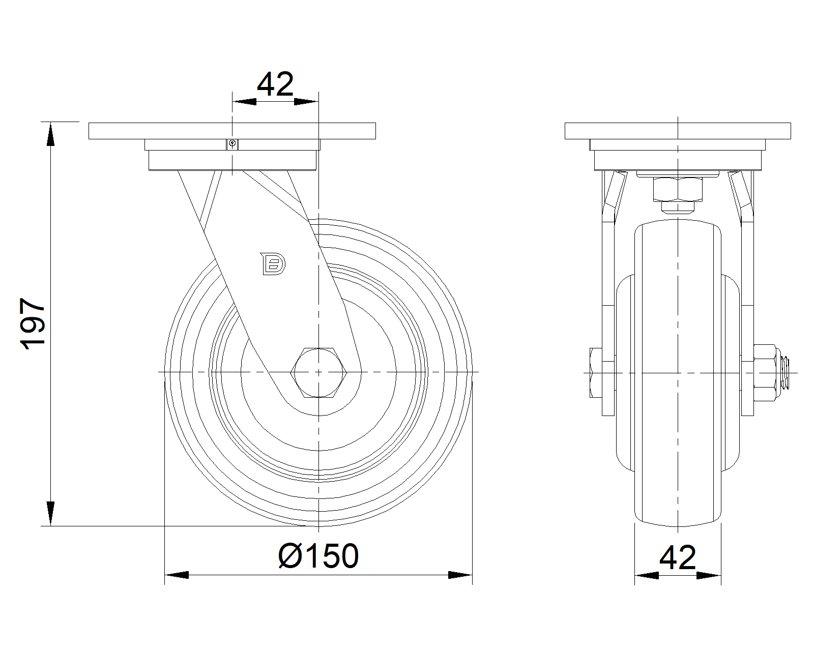 | Bánh xe VQPU (hồ quang nâu) Đường kính bánh xe × Chiều rộng bánh xe 150 x 42mm |