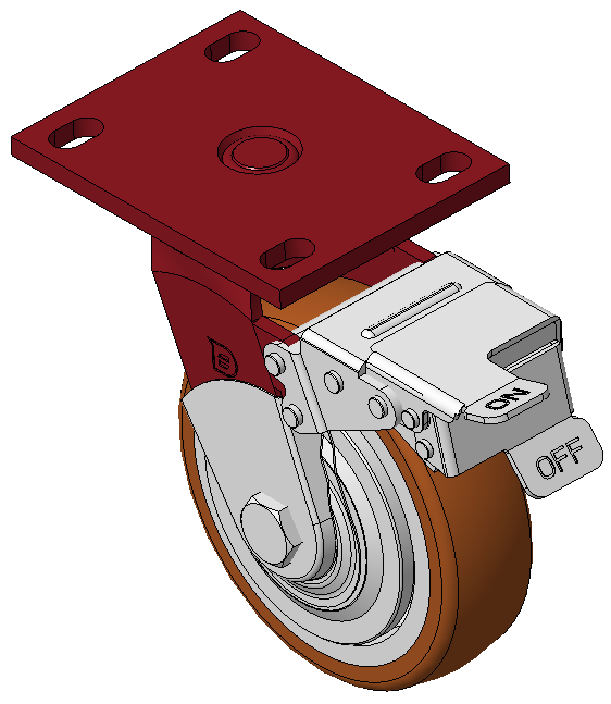 Lắp đế, khoảng cách lỗ 110 x 75 Lõi bánh xe bằng gang, gai bánh xe bằng polyurethane chất lượng cao, màu nâu phay Ổ trục bánh xe - bi chính xác |