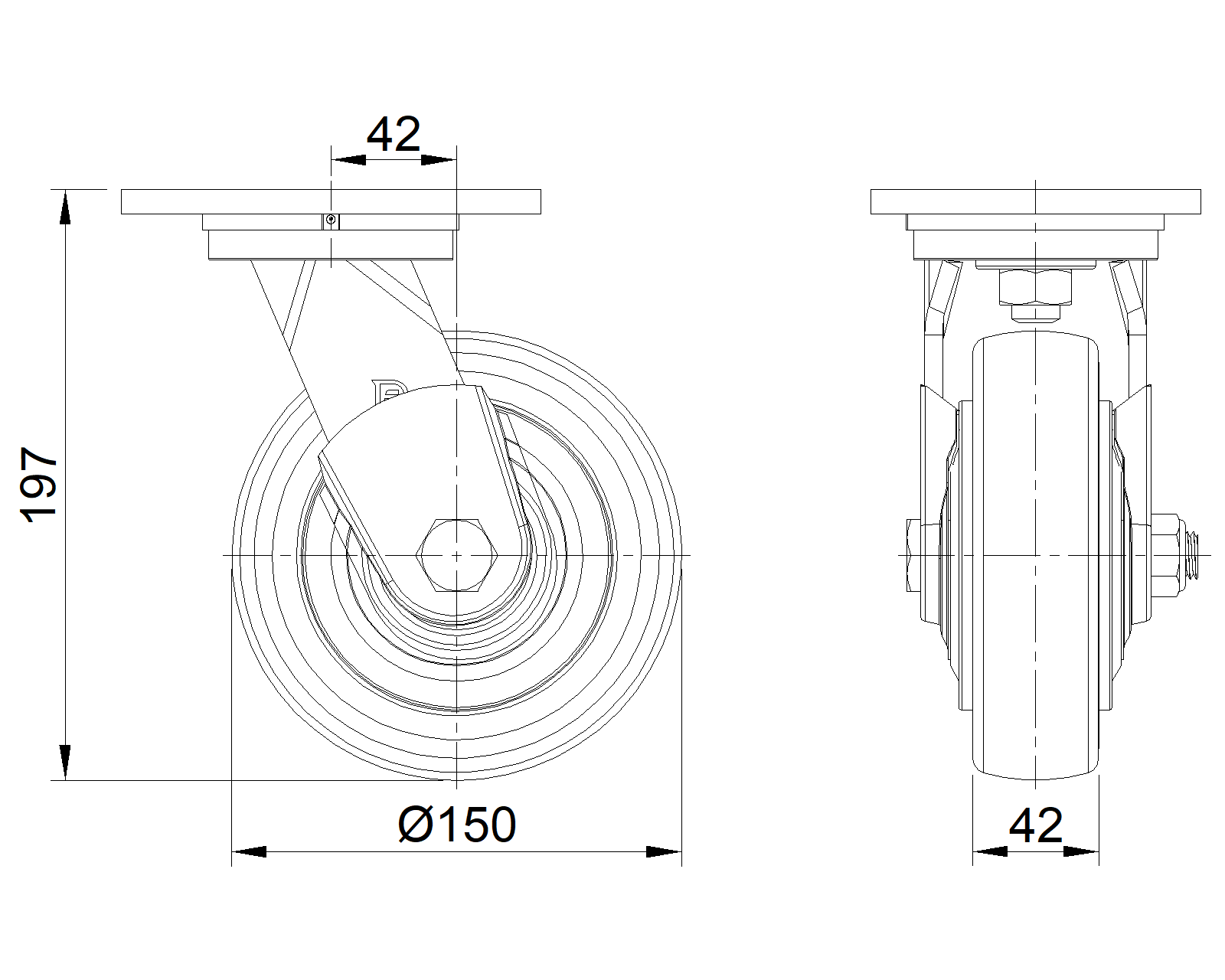 | Bánh xe VQPU (hồ quang nâu) Đường kính bánh xe × Chiều rộng bánh xe 150 x 42mm |