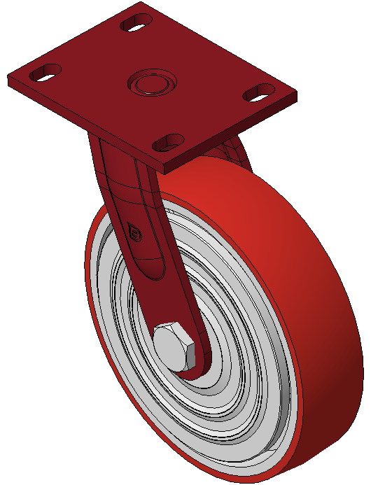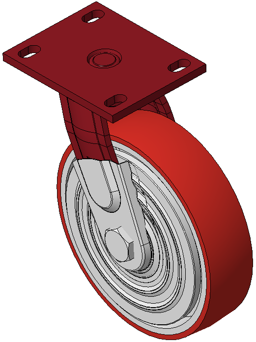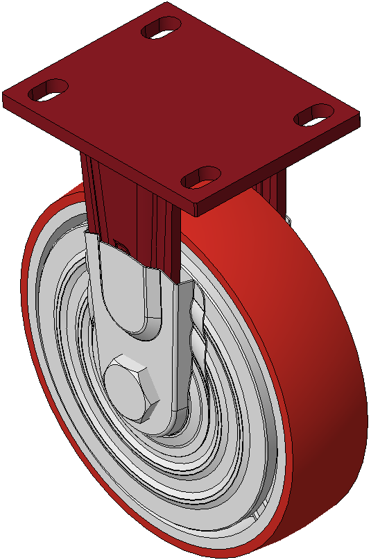 Hoàn thiện sơn đỏ, lắp đế, khoảng cách lỗ 110x75 Lõi gang với gai polyurethane chất lượng cao, phay màu đỏ Vòng bi bánh xe—vòng bi chính xác với nắp chống quấn đặc biệt |
