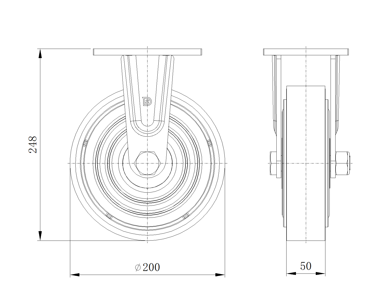 | Bánh xe QPU (nâu phẳng) Đường kính bánh xe × Chiều rộng bánh xe 200 x 50mm |