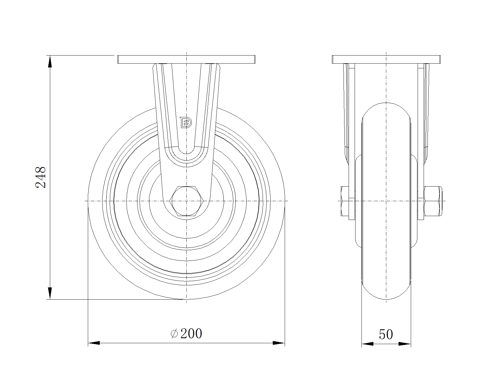| Bánh xe EQPU (hồ quang nâu) Đường kính bánh xe × Chiều rộng bánh xe 200 x 50mm |