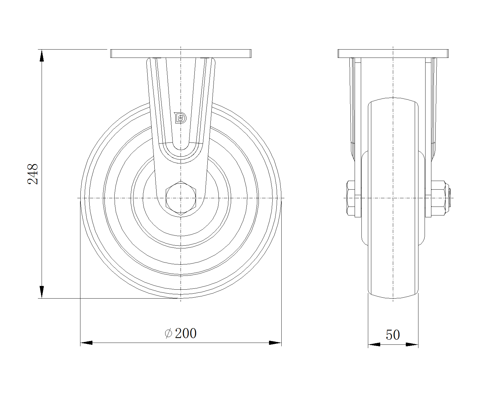 đơn vị mét đế quốc Đường kính bánh xe 200mm Chiều rộng bánh xe 50mm |