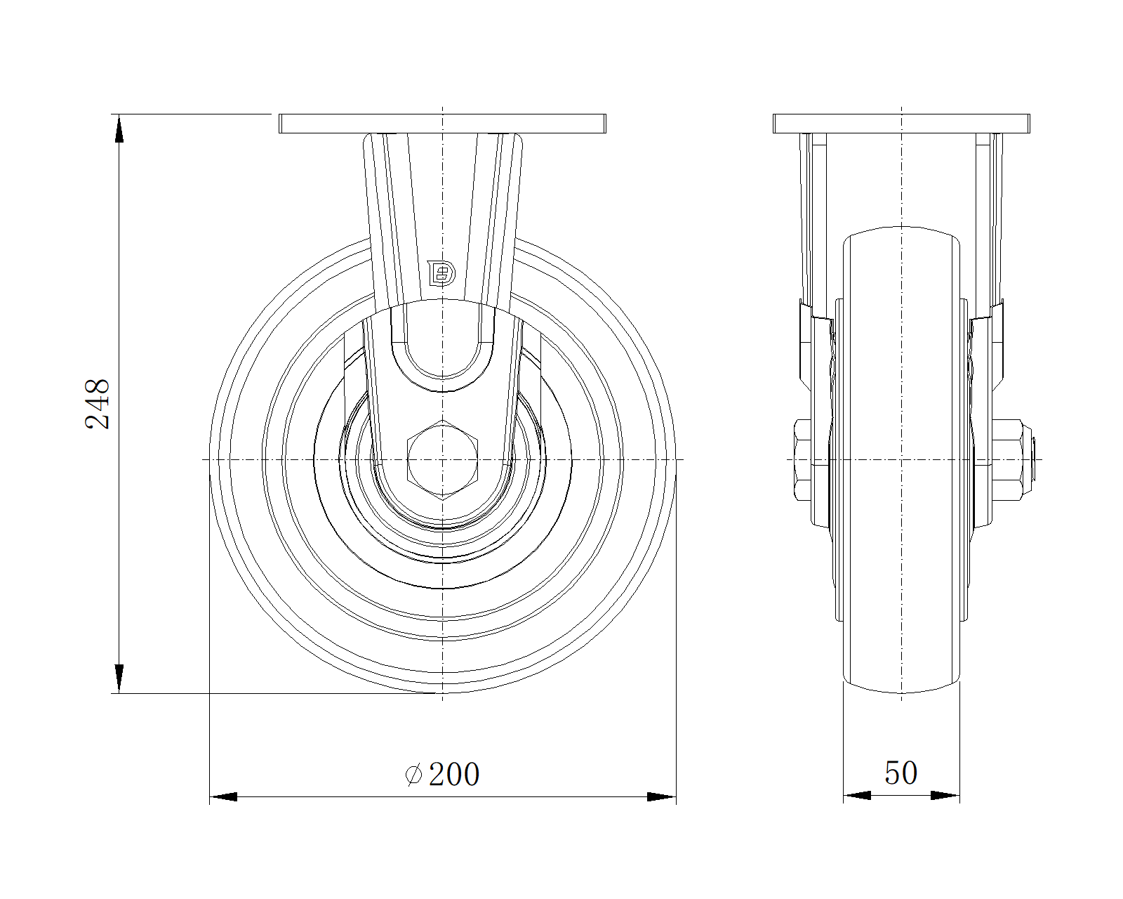 | Bánh xe VQPU (hồ quang nâu) Đường kính bánh xe × Chiều rộng bánh xe 200 x 50mm |