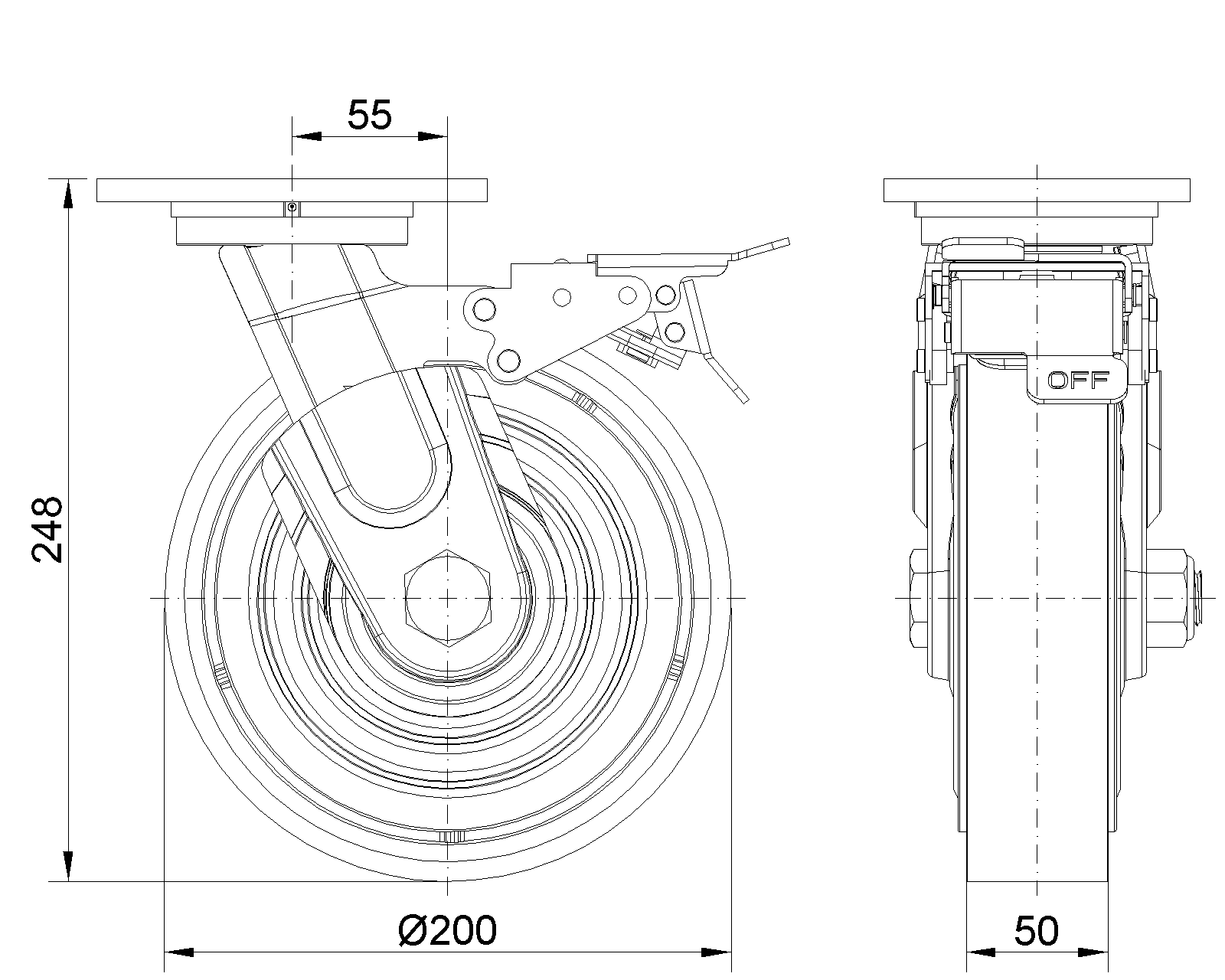 | Bánh xe QPU (nâu phẳng) Đường kính bánh xe × Chiều rộng bánh xe 200 x 50mm |