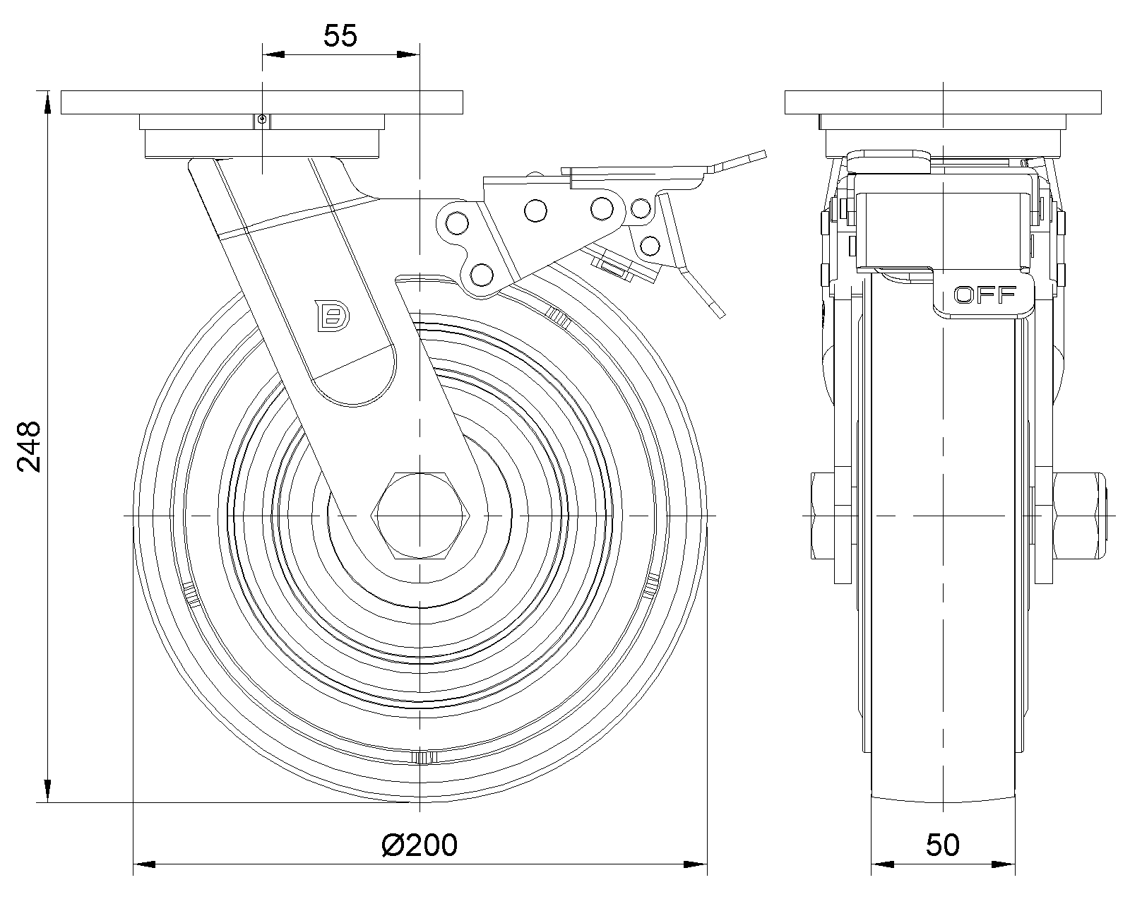| Bánh xe QPU (hồ quang nâu) Đường kính bánh xe × Chiều rộng bánh xe 200 x 50mm |