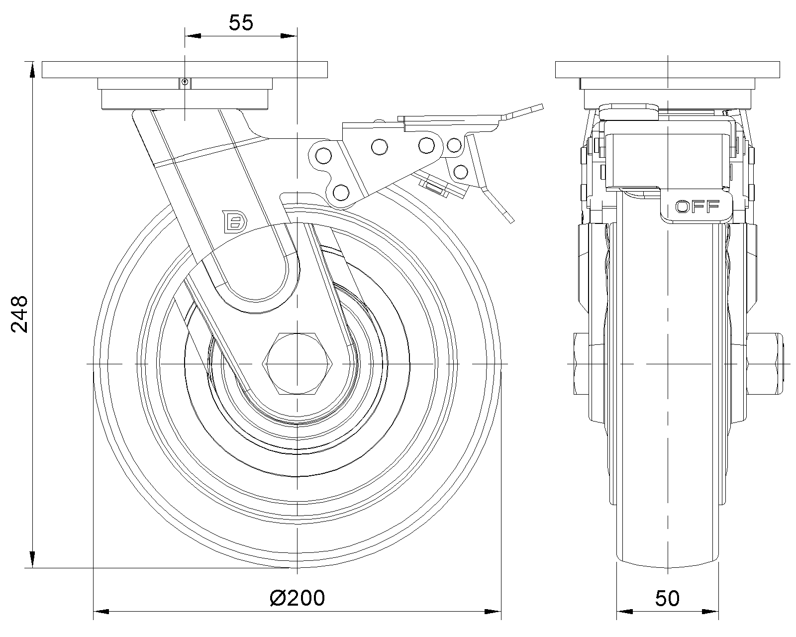 | Bánh xe MRC (trong suốt) Đường kính bánh xe × Chiều rộng bánh xe 200 x 50mm |