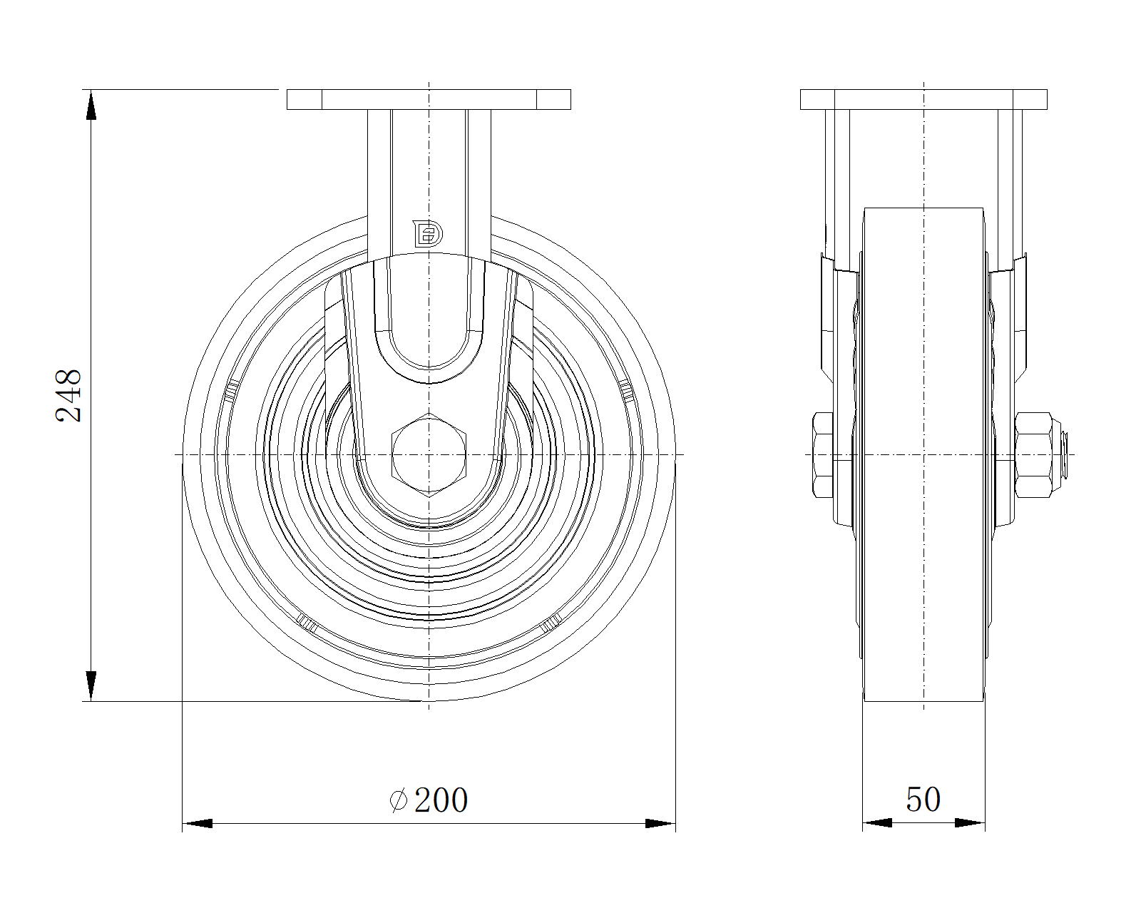 | Bánh xe QPU (nâu phẳng) Đường kính bánh xe × Chiều rộng bánh xe 200 x 50mm |