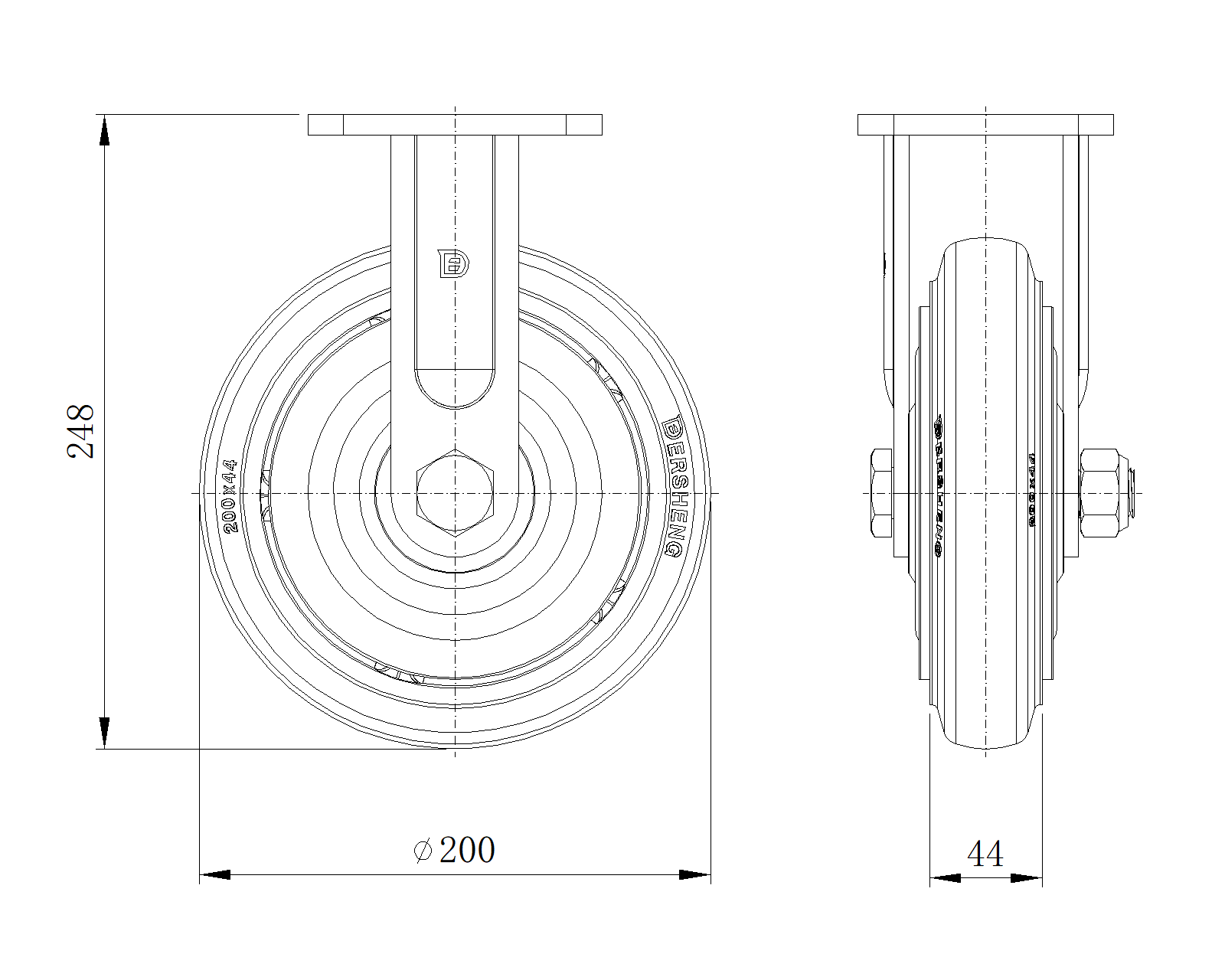 | Kéo NBR Wheel (Mill Raw) Đường kính bánh xe × Chiều rộng bánh xe 200 x 44mm |