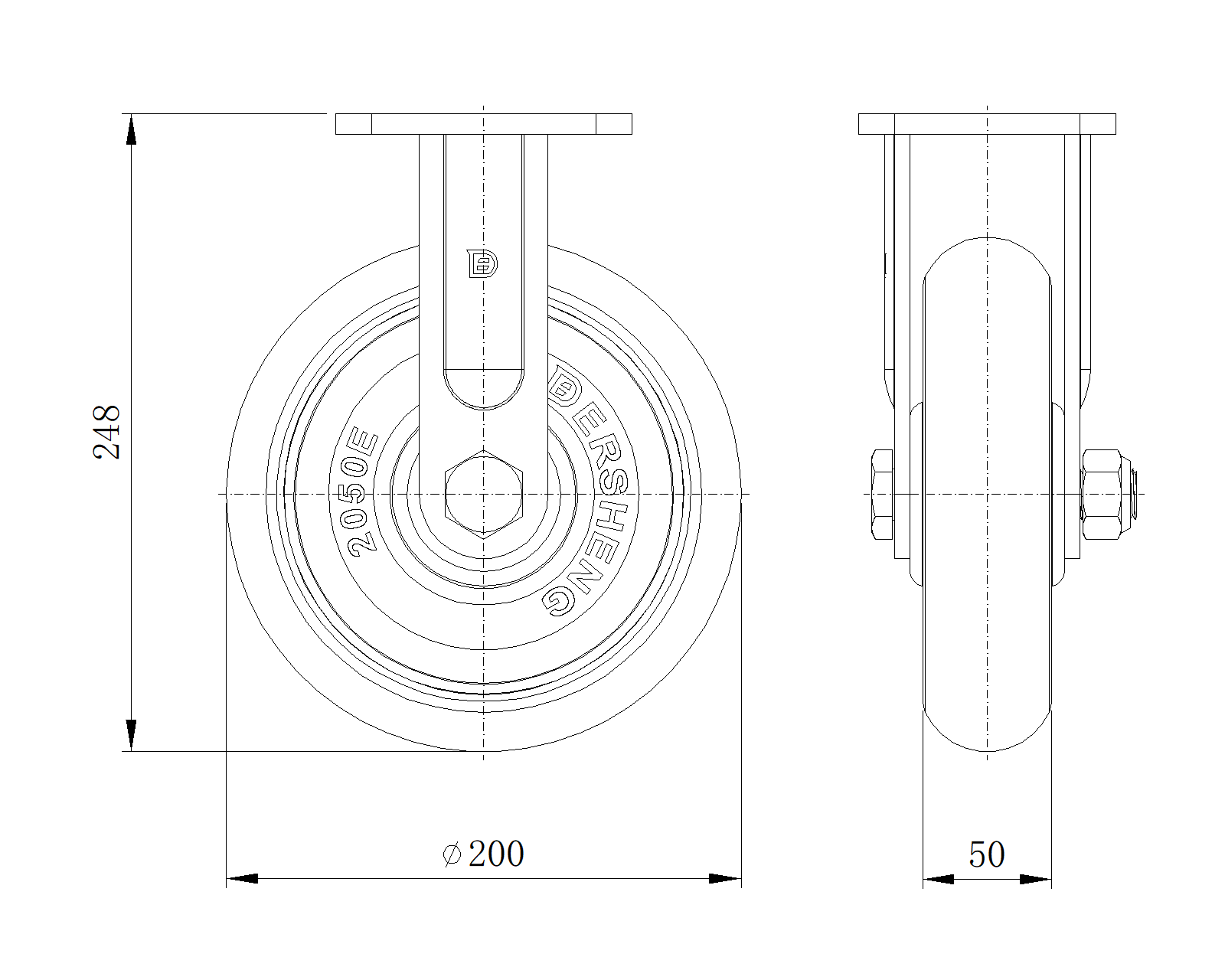 | Bánh xe EQPU (hồ quang nâu) Đường kính bánh xe × Chiều rộng bánh xe 200 x 50mm |