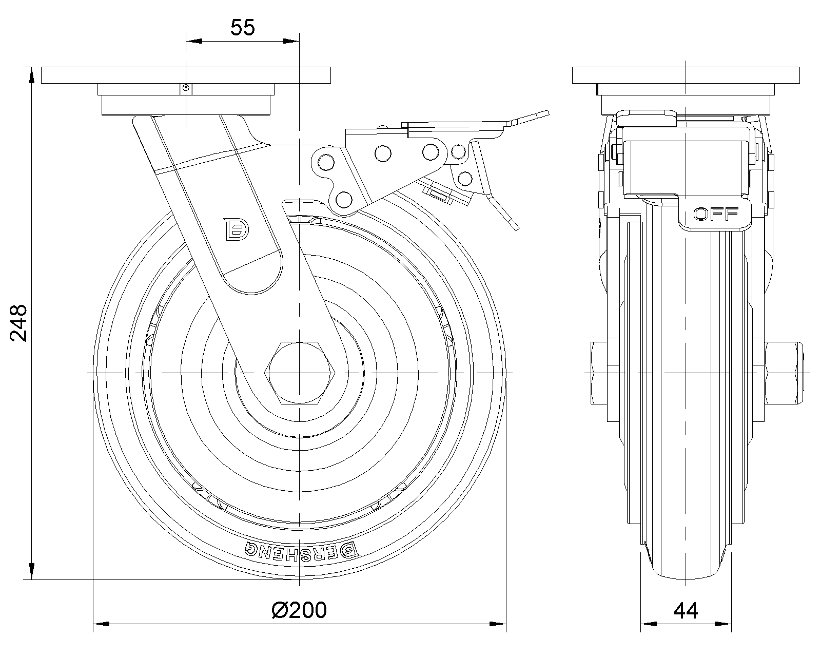 | Kéo NBR Wheel (Mill Raw) Đường kính bánh xe × Chiều rộng bánh xe 200 x 44mm |