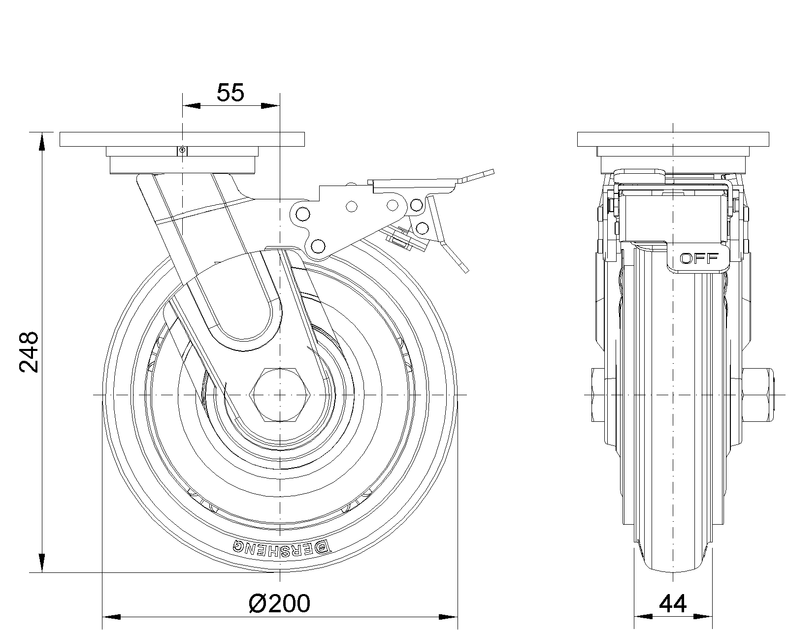 | Kéo NBR Wheel (Mill Raw) Đường kính bánh xe × Chiều rộng bánh xe 200 x 44mm |