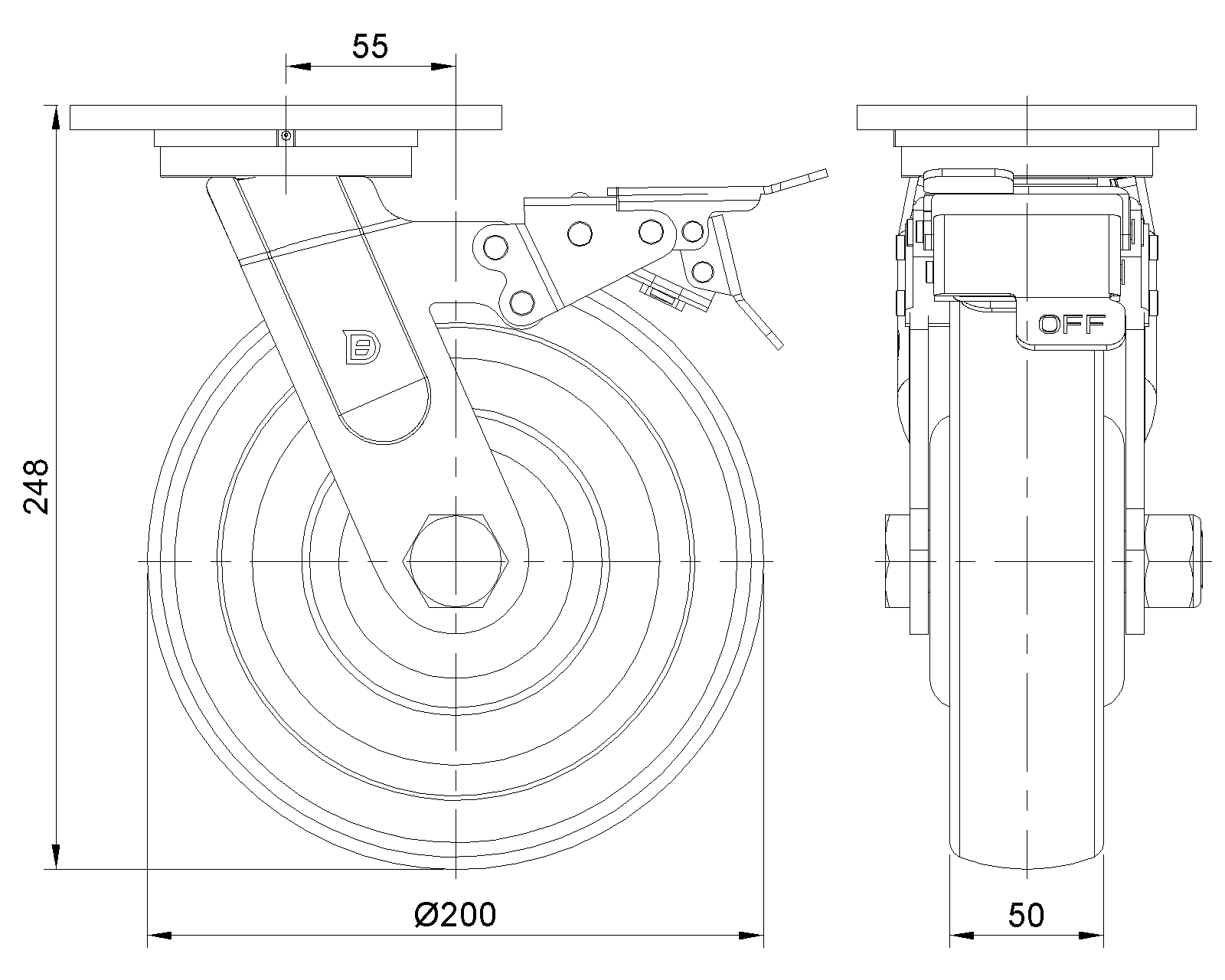 | Bánh xe VQPU (hồ quang nâu) Đường kính bánh xe × Chiều rộng bánh xe 200 x 50mm |