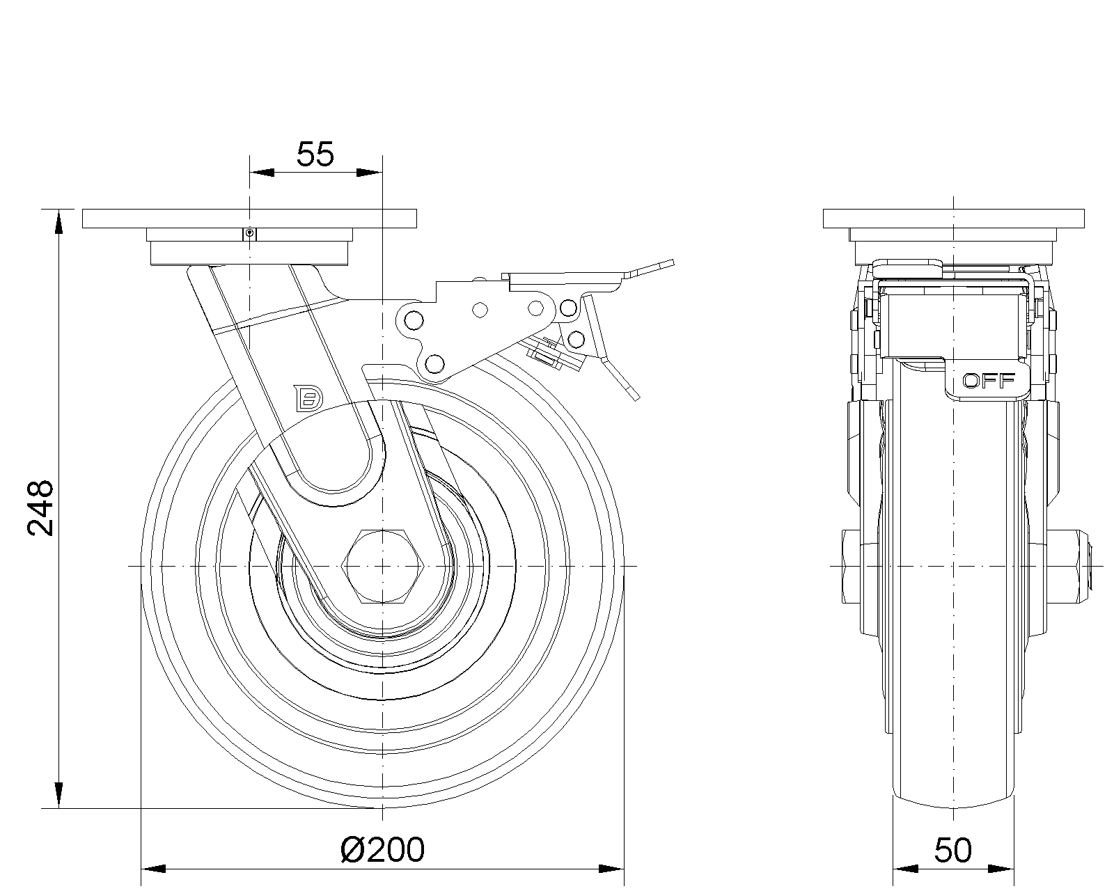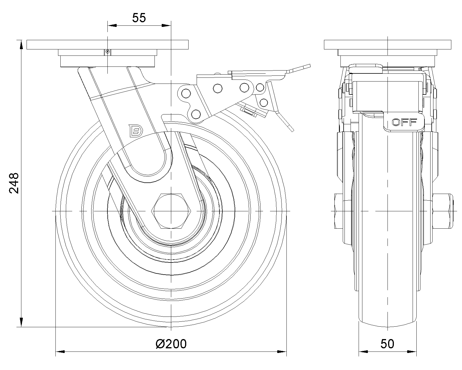 | Bánh xe VQPU (hồ quang nâu) Đường kính bánh xe × Chiều rộng bánh xe 200 x 50mm |