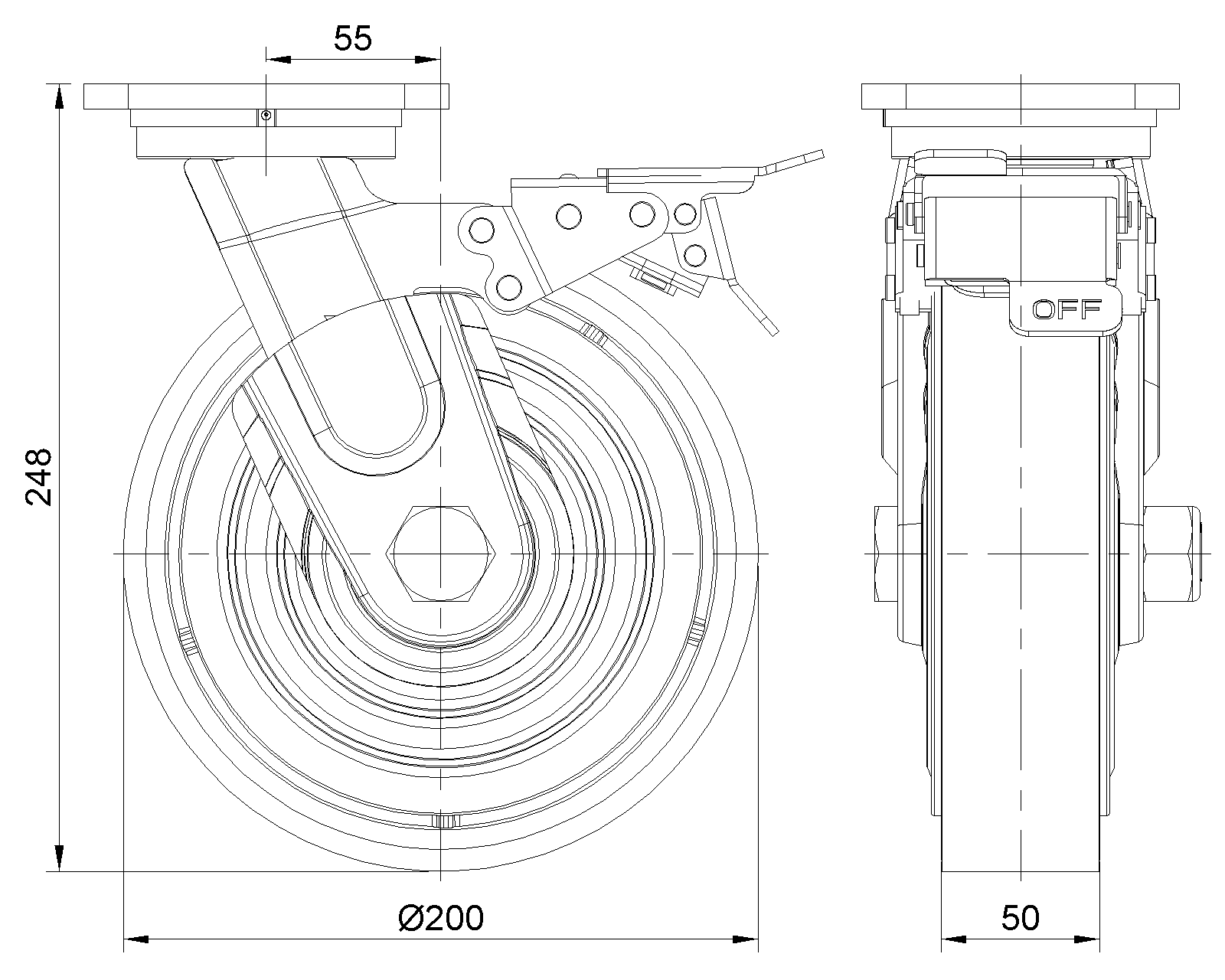 | Bánh xe PU (đỏ phẳng) Đường kính bánh xe × Chiều rộng bánh xe 200 x 50mm |