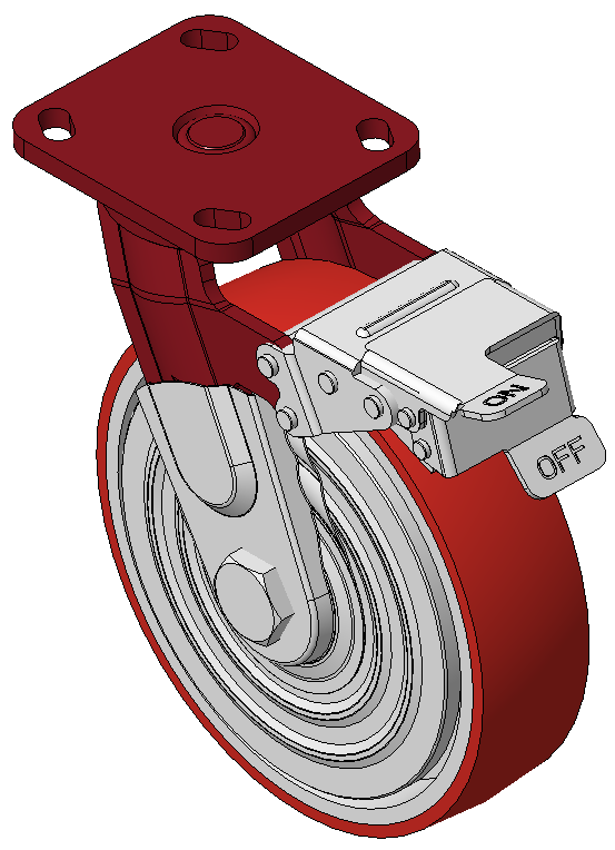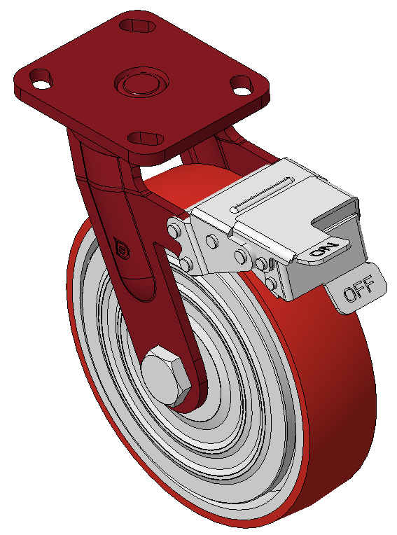 | Bánh xe có phanh trước và hệ thống khóa, khung thép hàn Sơn đỏ, lắp đế, khoảng cách lỗ 85x70 Lõi bánh xe bằng gang, gai polyurethane chất lượng cao, phay màu đỏ Vòng bi bánh xe – vòng bi cầu chính xác |