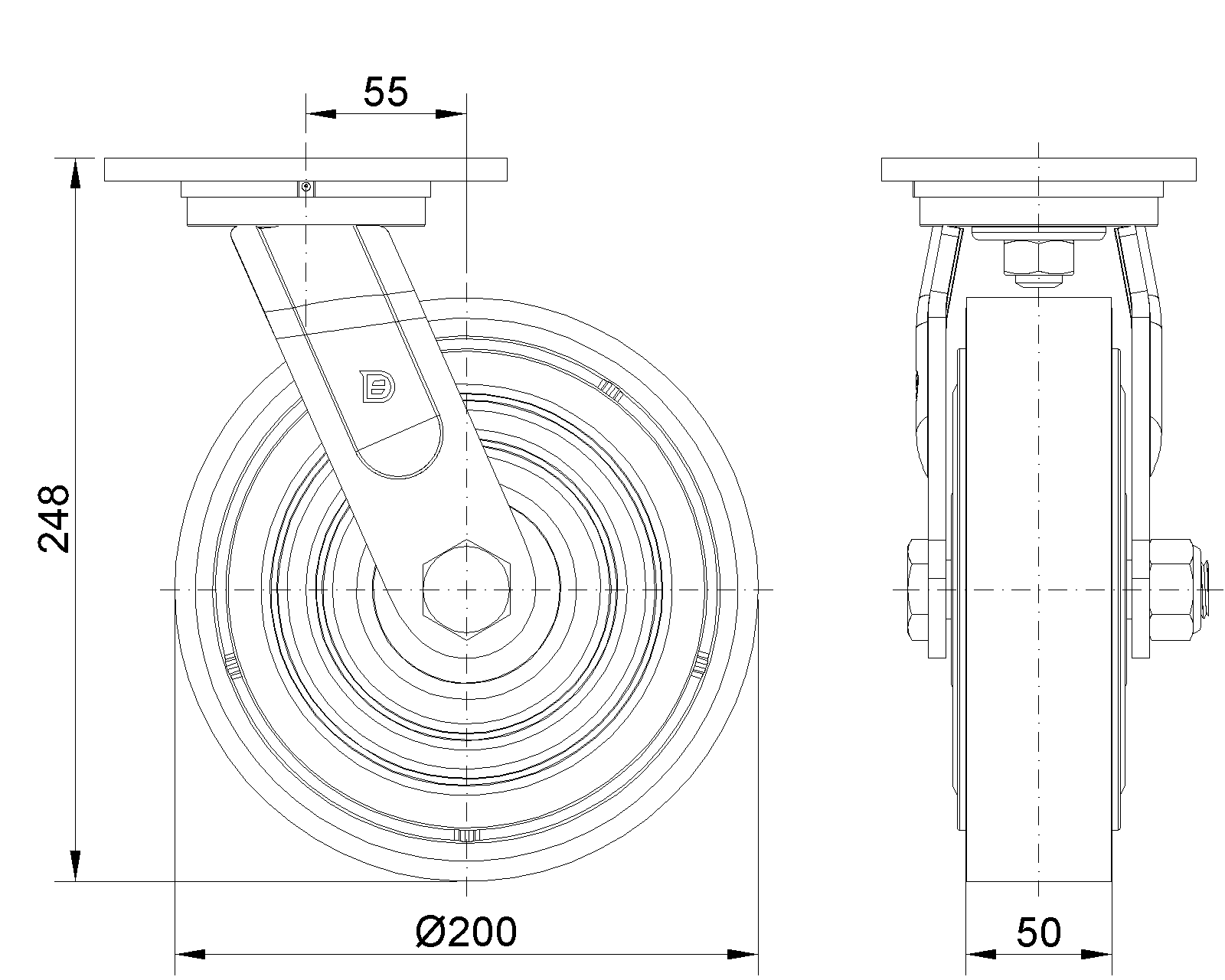 | Bánh xe PU (đỏ phẳng) Đường kính bánh xe × Chiều rộng bánh xe 200 x 50mm |