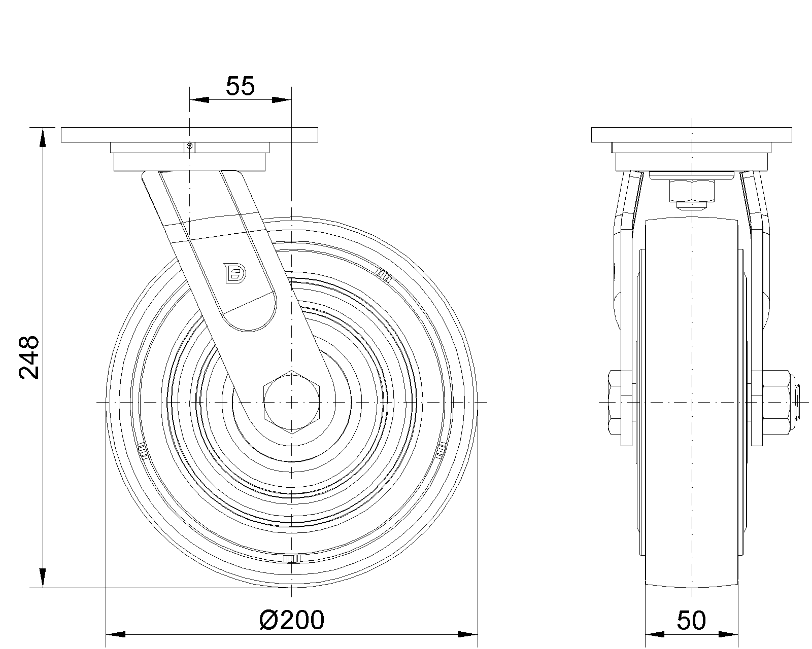 | Bánh xe QPU (hồ quang nâu) Đường kính bánh xe × Chiều rộng bánh xe 200 x 50mm |
