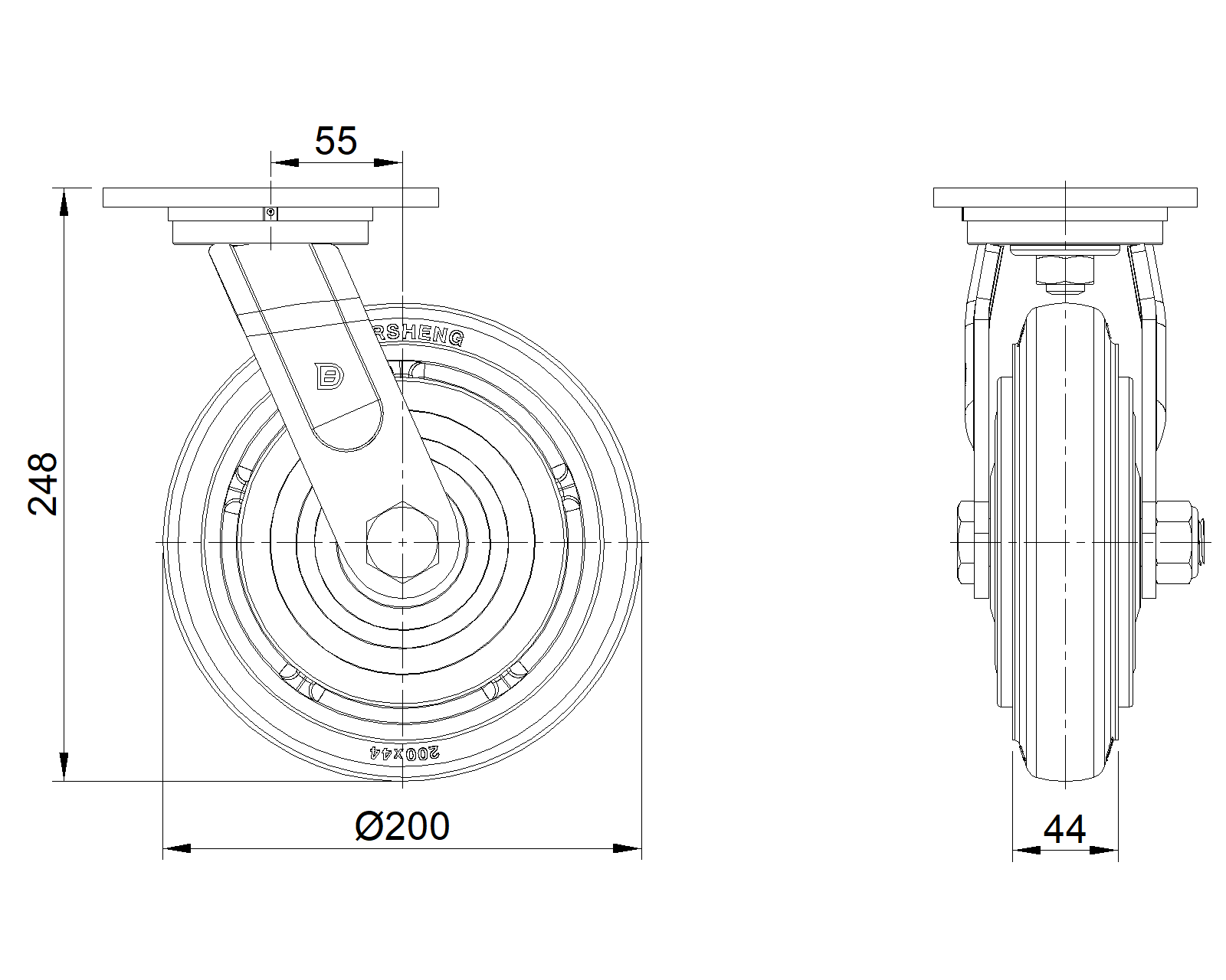 đơn vị mét đế quốc Đường kính bánh xe 200mm Chiều rộng bánh xe 44mm |