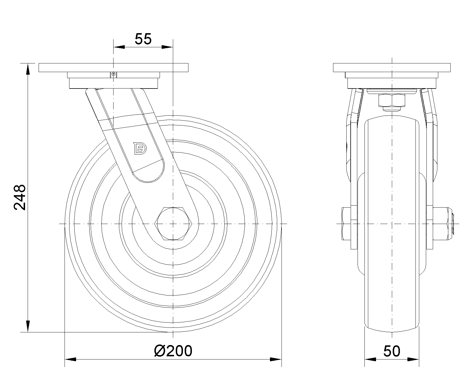 | Bánh xe VQPU (hồ quang nâu) Đường kính bánh xe × Chiều rộng bánh xe 200 x 50mm |