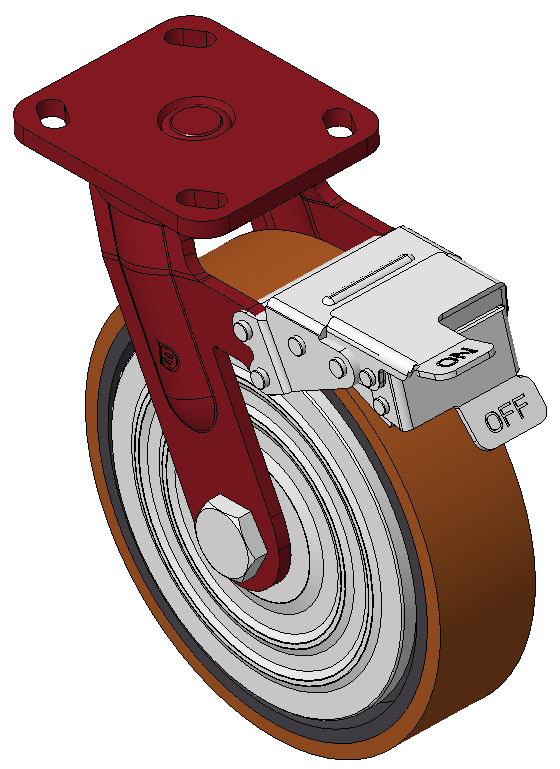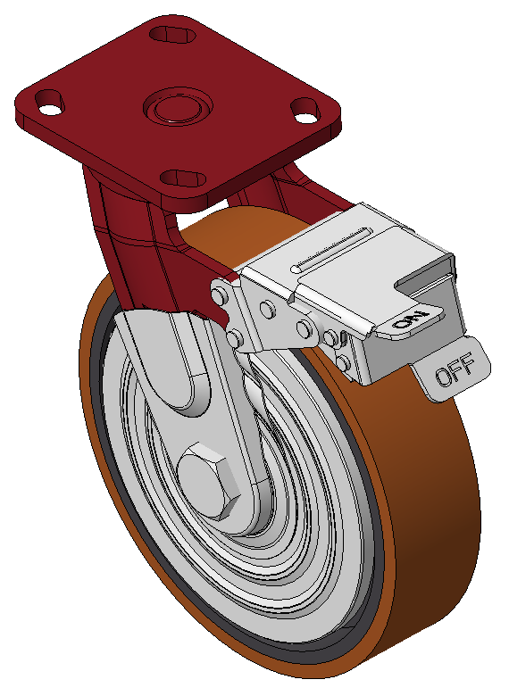 | Bánh xe có hệ thống phanh và khóa bánh trước, khung thép hàn Sơn đỏ, lắp đế, khoảng cách lỗ 85x70 Lõi bánh xe bằng gang, gai polyurethane chất lượng cao, phay màu nâu Ổ bi bánh xe - ổ bi chính xác với nắp bánh xe chống quấn đặc biệt |