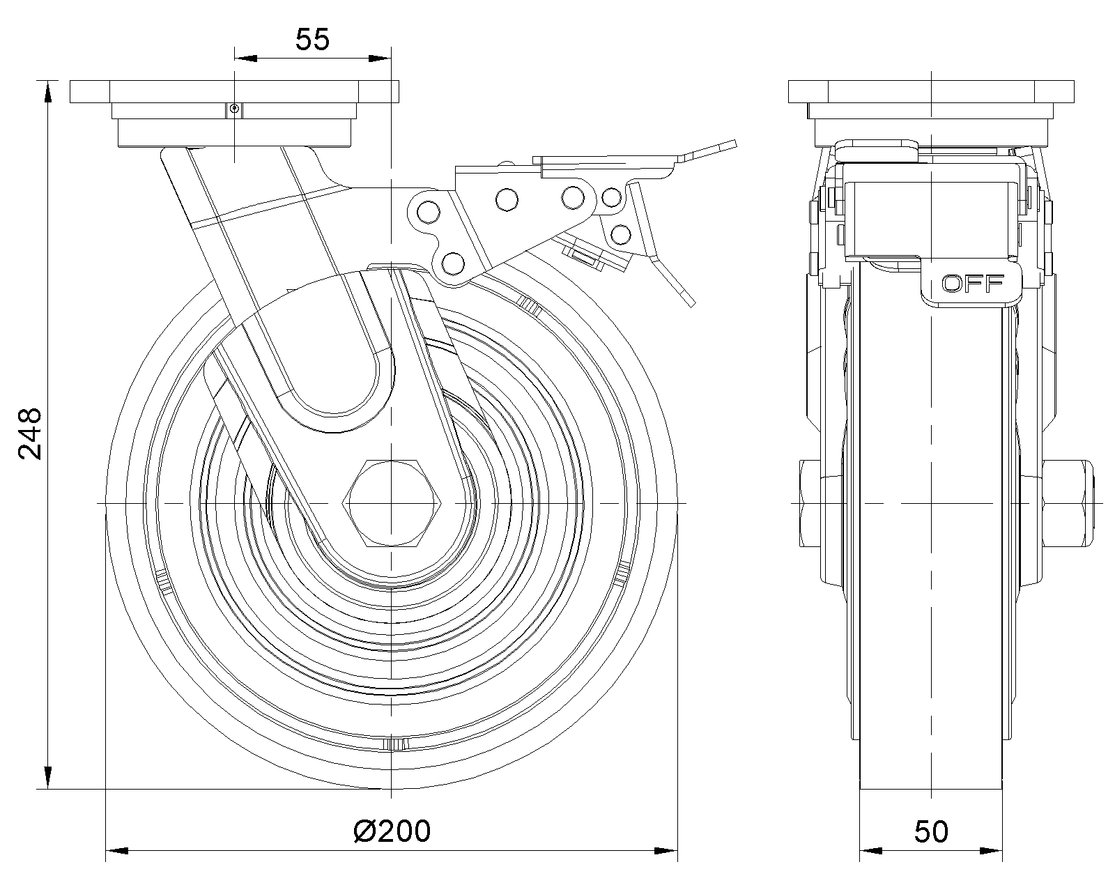 | Bánh xe QPU (nâu phẳng) Đường kính bánh xe × Chiều rộng bánh xe 200 x 50mm |