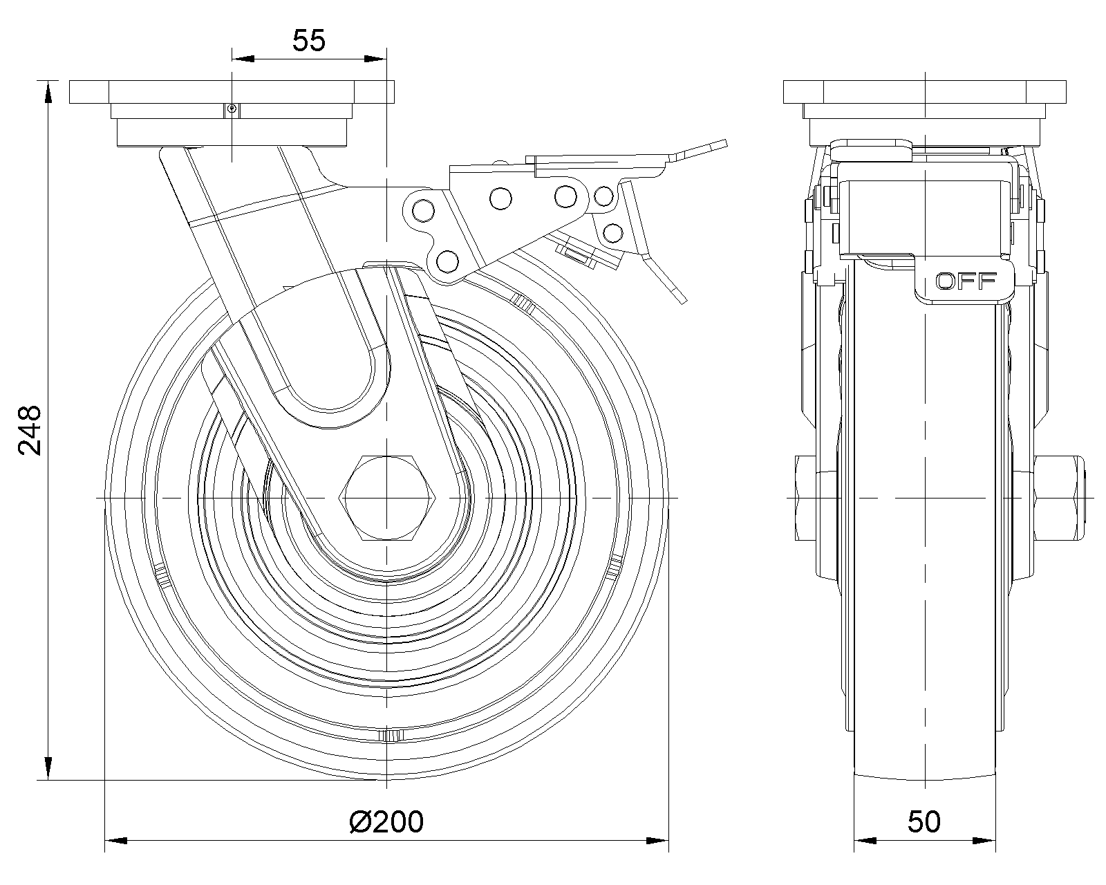 | Bánh xe QPU (hồ quang nâu) Đường kính bánh xe × Chiều rộng bánh xe 200 x 50mm |