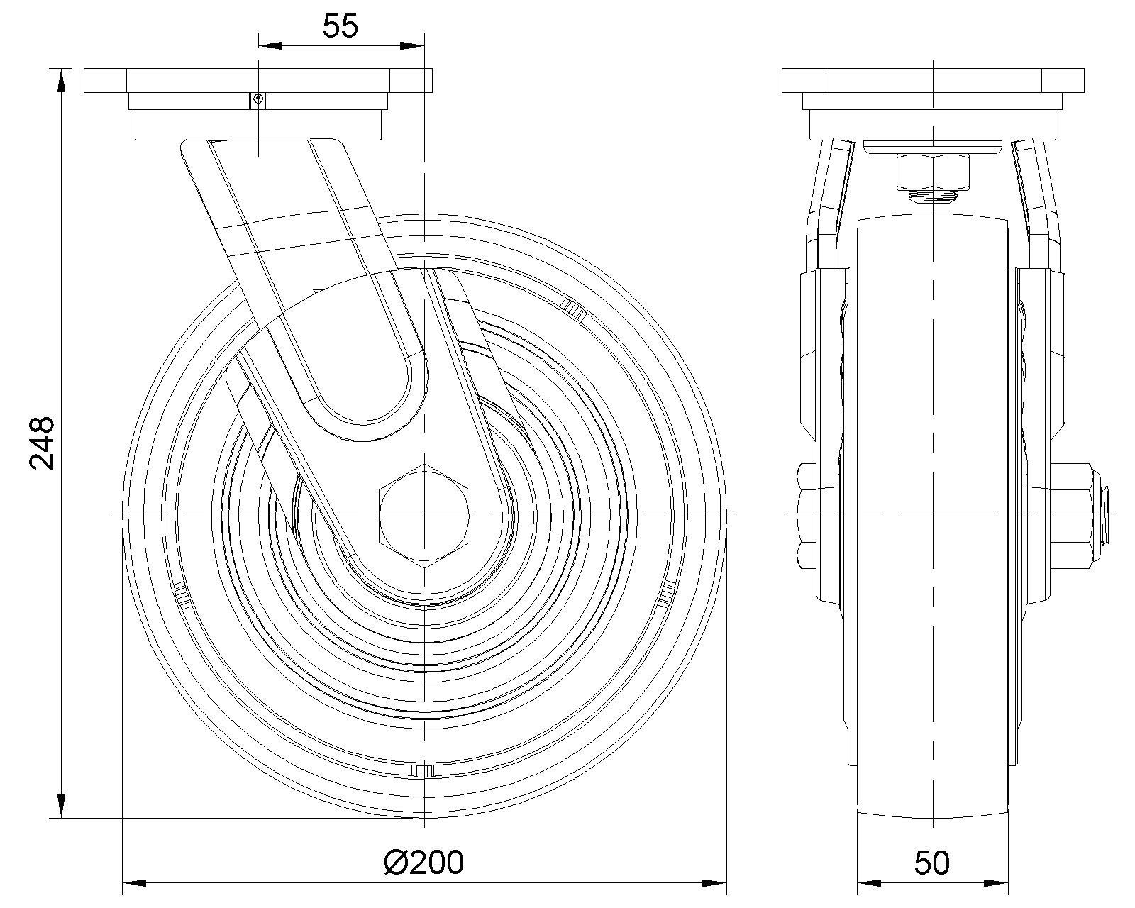 | PU Bánh xe (Vòng cung đỏ) đường kính bánh xe × chiều rộng bánh xe 200 × 50mm |