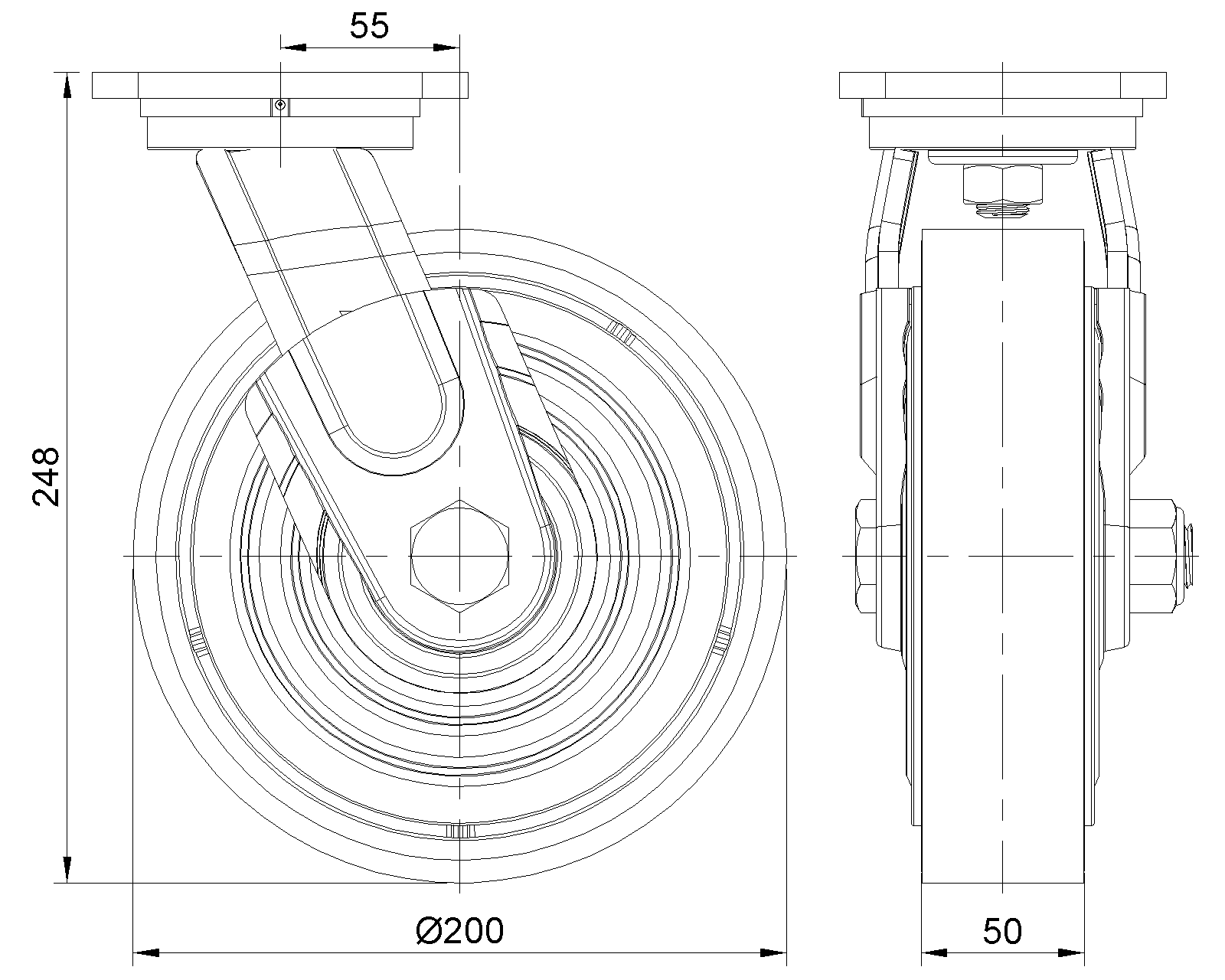 | Bánh xe QPU (nâu phẳng) Đường kính bánh xe × Chiều rộng bánh xe 200 x 50mm |