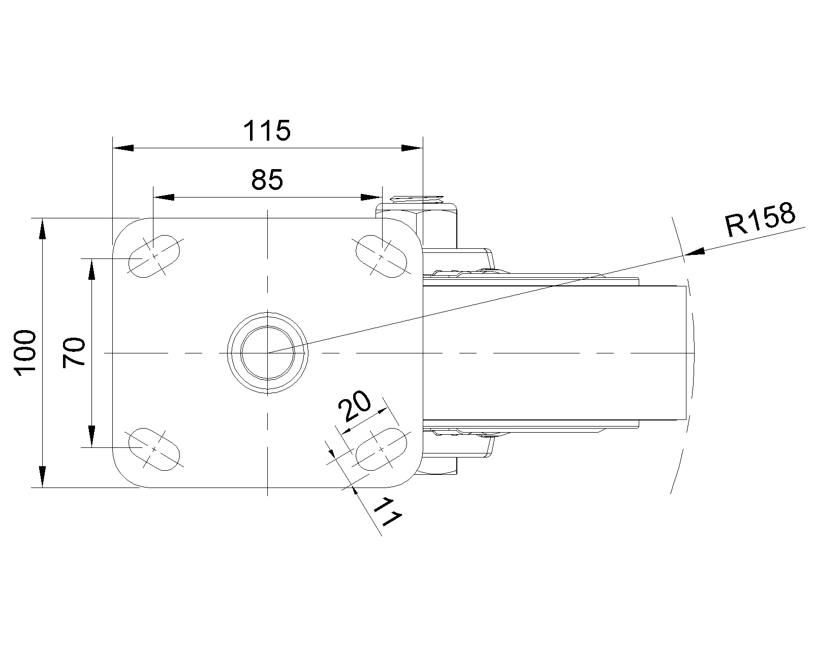 Bánh xe xoay với khung thép hàn Hoàn thiện sơn đỏ, lắp đế, khoảng cách lỗ 85x70 Lõi gang với gai polyurethane chất lượng cao, phay màu nâu Vòng bi bánh xe—vòng bi chính xác với nắp chống quấn đặc biệt |