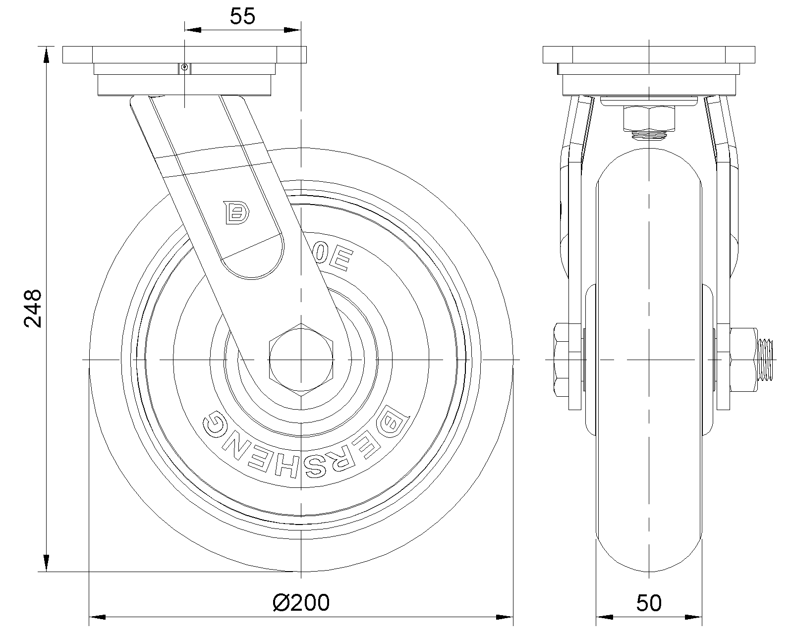 | Bánh xe EQPU (hồ quang nâu) Đường kính bánh xe × Chiều rộng bánh xe 200 x 50mm |