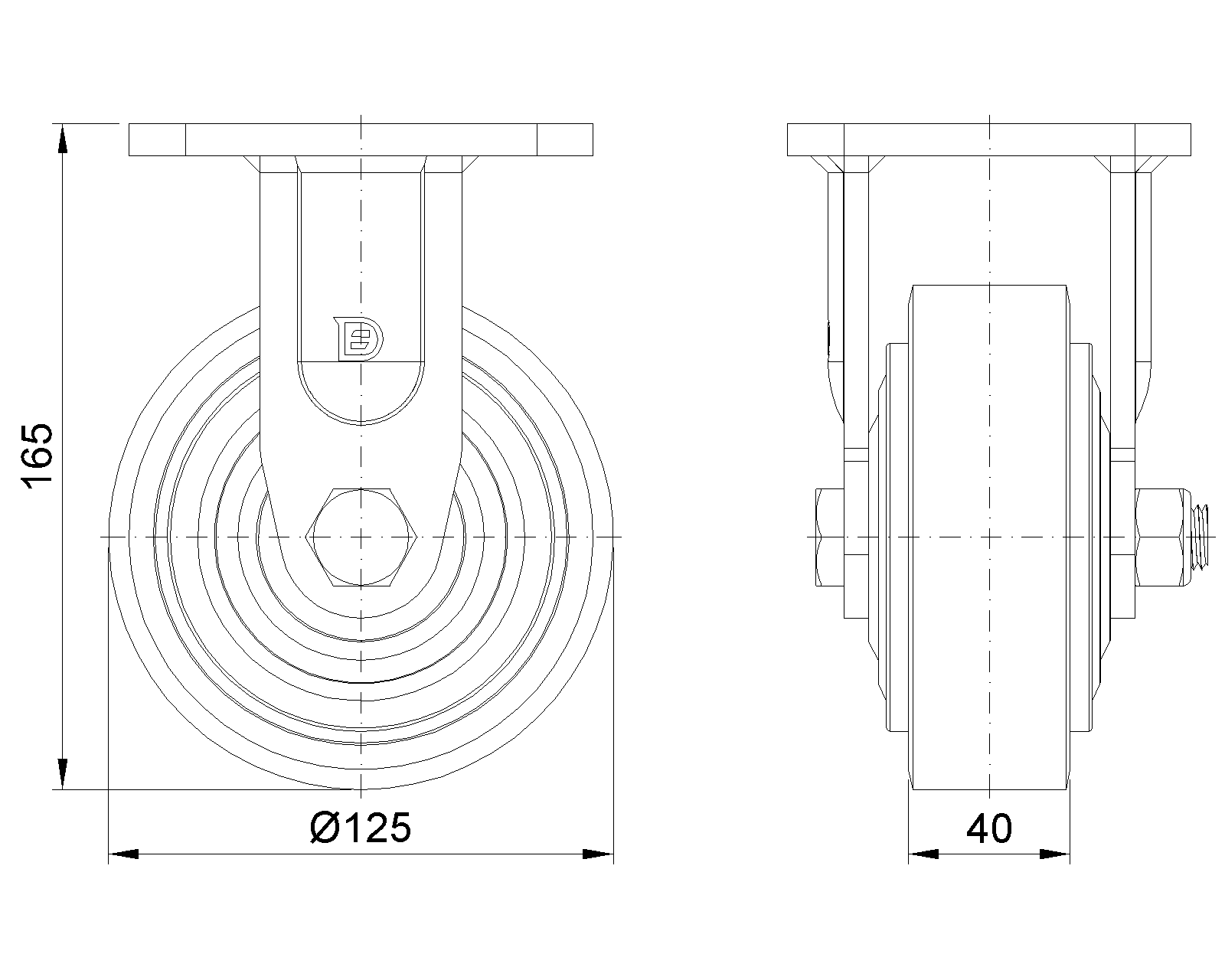 | Bánh xe PU(bánh phẳng màu đỏ) đường kính bánh xe × chiều rộng bánh xe là 125 × 40 mm. |