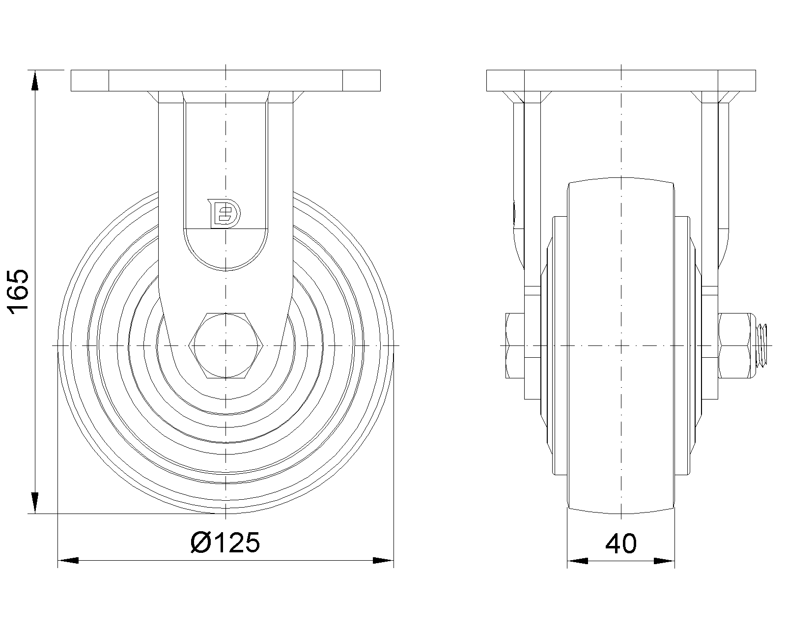 đơn vị mét đế quốc Đường kính bánh xe 125mm Chiều rộng bánh xe 40mm  |