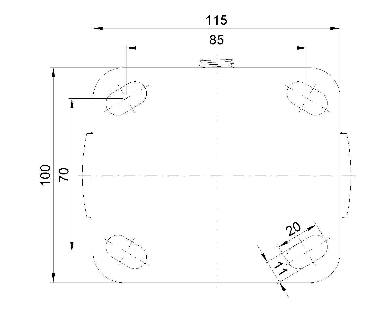 Quy cách tấm lắp 115 x 100mm khoảng cách các lỗ trên tấm nền 85 x 70mm Khoảng cách các lỗ lắp 20 x 11mm Tổng chiều cao 165mm Độ cứng 93±5° Shore A Tải trọng (động) 340kgs  |