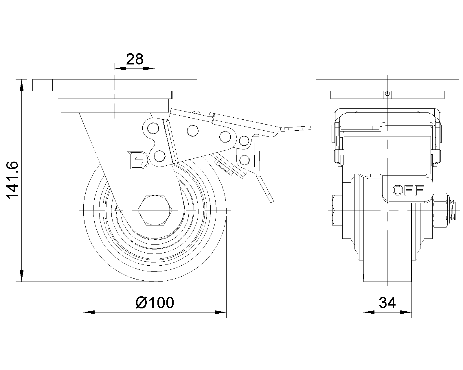 | Bánh xe QPU (nâu phẳng) Đường kính bánh xe × Chiều rộng bánh xe 100 x 34mm |