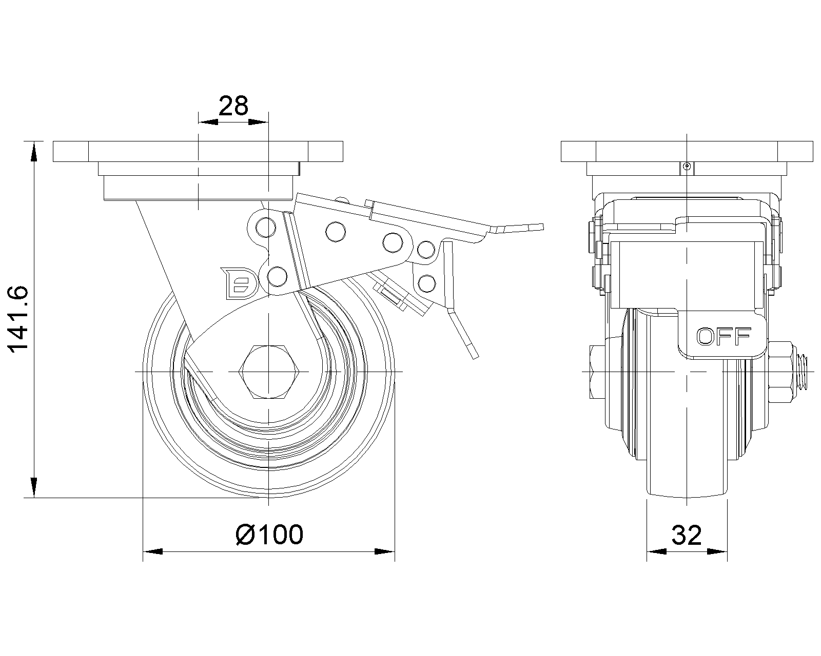 | Bánh xe MRC (trong suốt) Đường kính bánh xe × Chiều rộng bánh xe 100 x 32mm |
