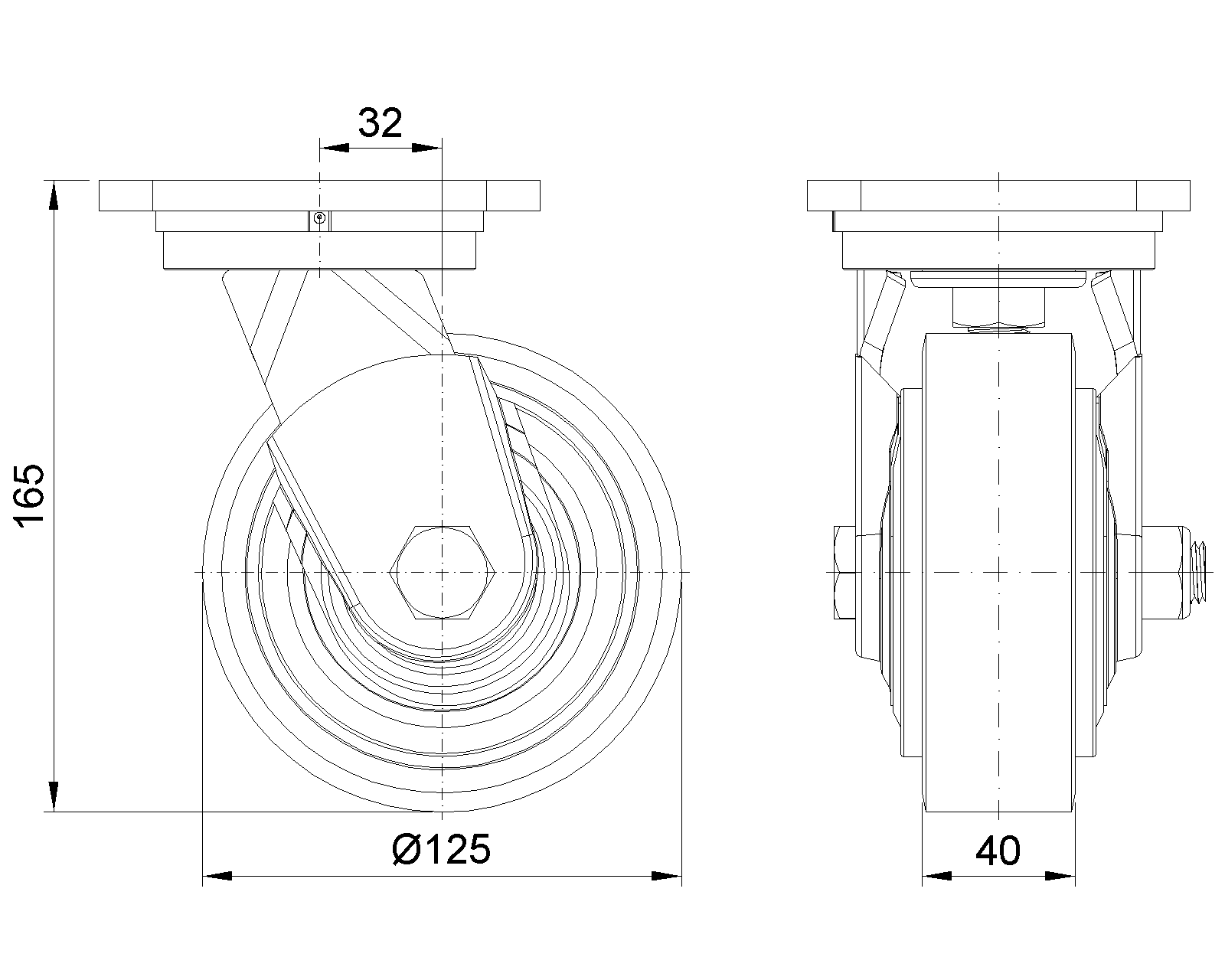 đơn vị mét đế quốc Đường kính bánh xe 125mm Chiều rộng bánh xe 40mm  |