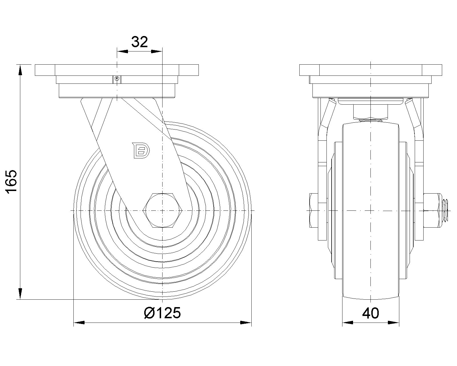 | Bánh xe PU (vòng cung đỏ) Đường kính bánh xe × Chiều rộng bánh xe 125 × 40mm |
