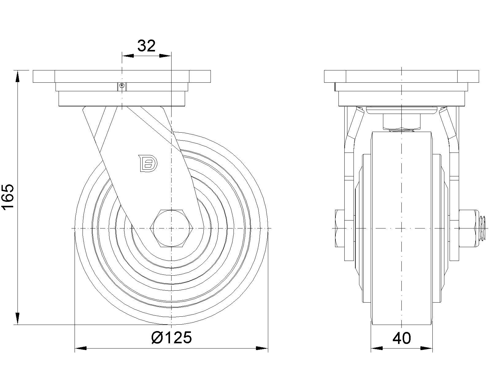 | Bánh xe QPU (nâu phẳng) Đường kính bánh xe × Chiều rộng bánh xe 125 x 40mm |