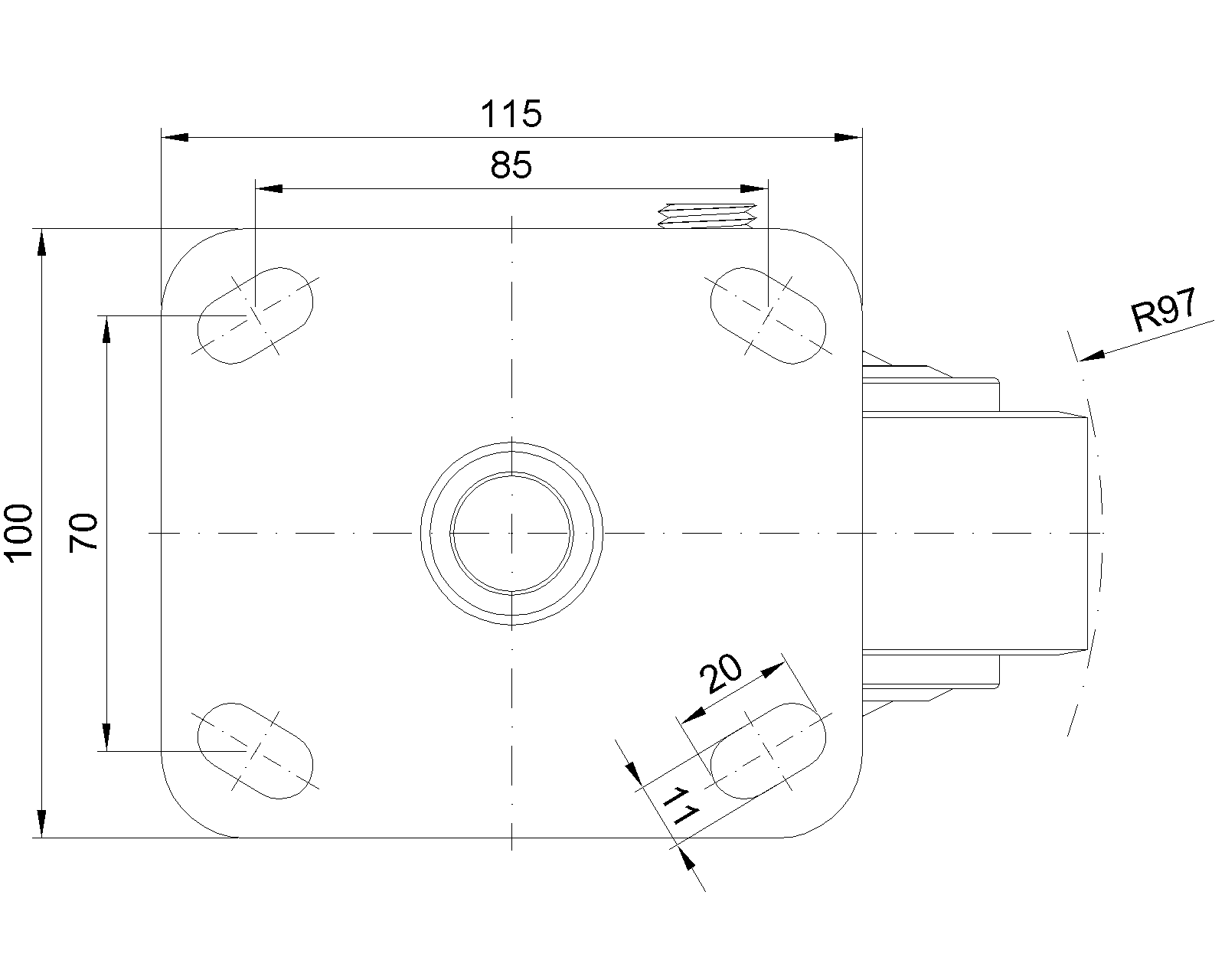 Lắp đế, khoảng cách lỗ 110x75 Lõi bánh xe bằng gang, gai polyurethane chất lượng cao, màu nâu phay Vòng bi bánh xe - vòng bi chính xác  |