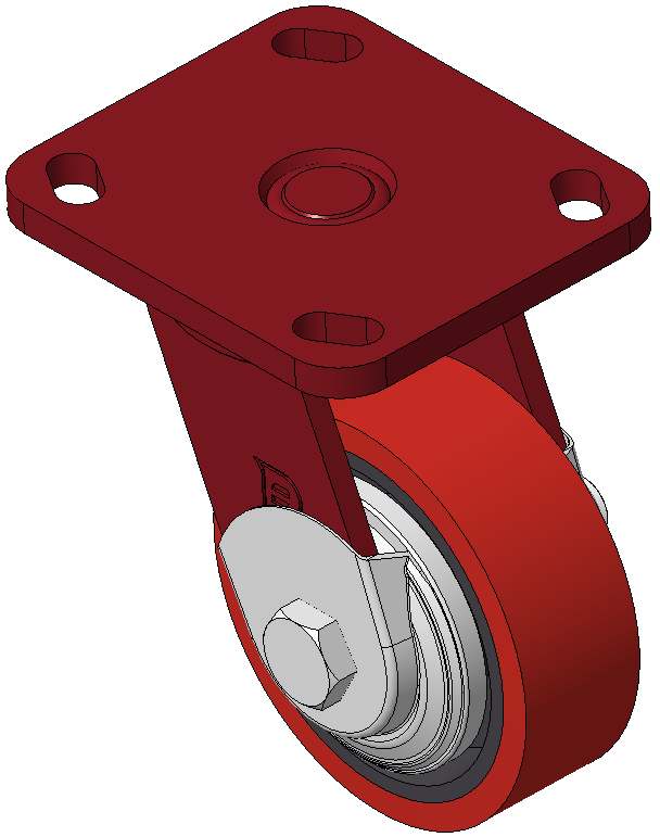 Lắp đế, khoảng cách lỗ 85 x 70 Lõi gang với gai polyurethane chất lượng cao, phay màu đỏ Vòng bi bánh xe—vòng bi chính xác với nắp chống quấn đặc biệt  |